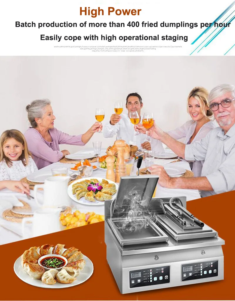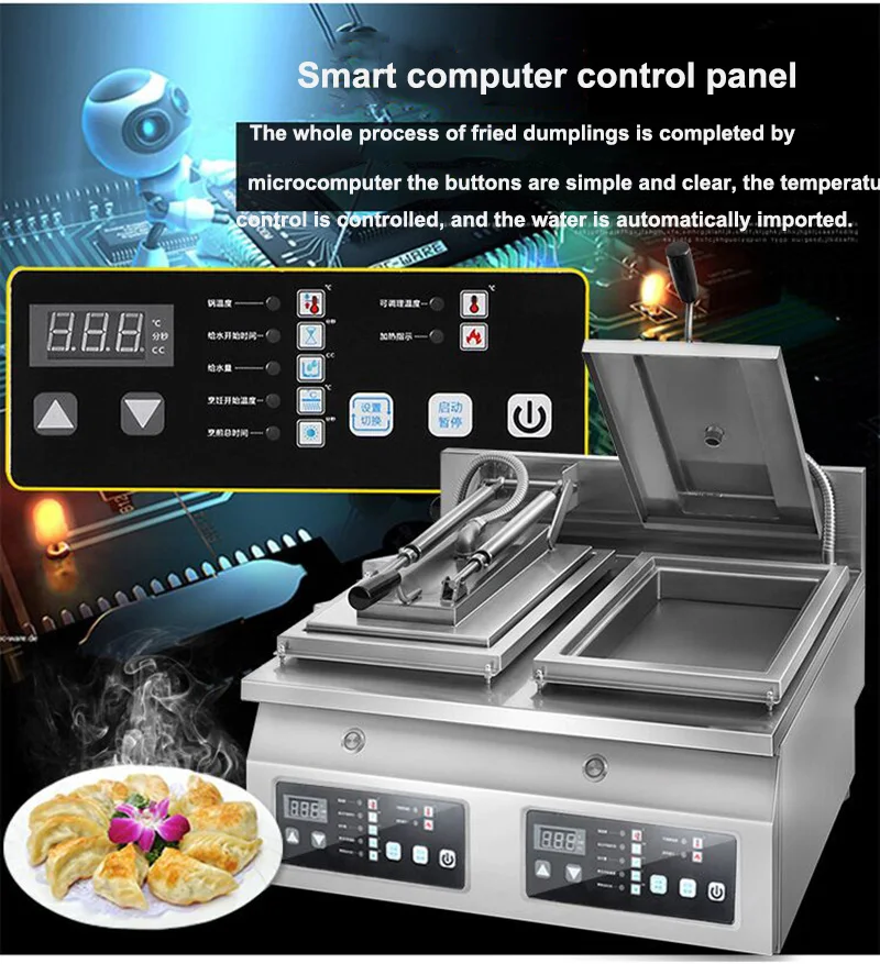 1. Машина gyoza изготовлена из нержавеющей стали 304 и срок службы будет длиннее Другое сырье. 2. Это полностью автоматическая машина для жарки пельменей. 3. Автоматический впрыск воды, нагрев. Время жарки регулируется. 4. Весь процесс занимает всего 5 минут, поэтому нет проблем для выходных и праздников. 5. Наша машина gyoza широко используется в хлебопекарном оборудовании, ресторанном заводе, фабрике по производству продуктов питания, фабрике по переработке мяса, фабрике по производству пасты, столовой и т. д.