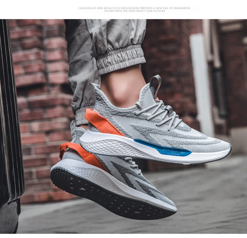 Мужские кроссовки, летняя модная мужская обувь, Уличная обувь для бега, дышащая мужская сетчатая обувь на шнуровке, повседневная нескользящая обувь на воздушной подушке