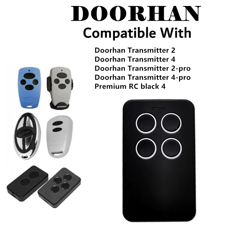 Все DOORHAN пульт дистанционного управления 433 МГц код прокатки Например: Передатчик Doorhan 2 Передатчик Doorhan 4 Передатчик Doorhan 2-pro Передатчик Doorhan 4-pro Премиум RC черный 4 Обратите внимание, что наш пульт дистанционного управления является совместимым/заменяемым/клонированным пультом, а не оригинальным.