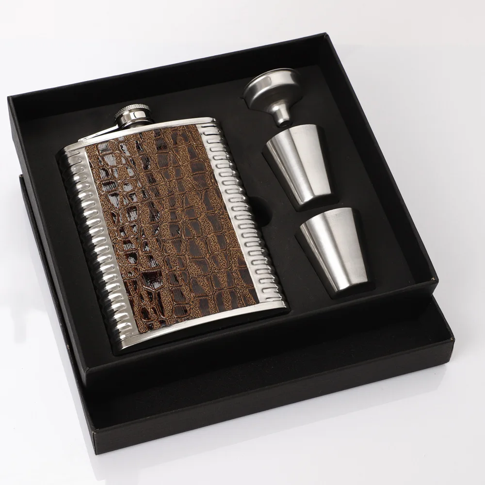 8 унций крокодиловая кожа Нержавеющая сталь набор фляг для виски с 1 воронкой 2 чашки