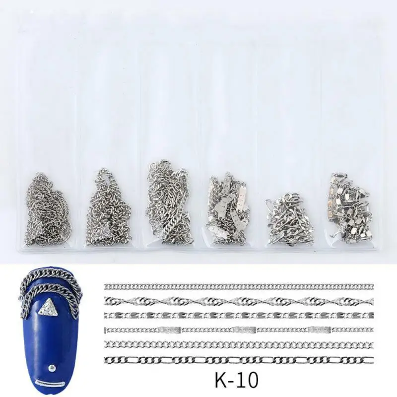 6 шт. в упаковке, украшение для маникюра, металлическая цепочка, красные украшения, Япония и Южная Корея, цветная цепочка, лак для ногтей, украшение для клея