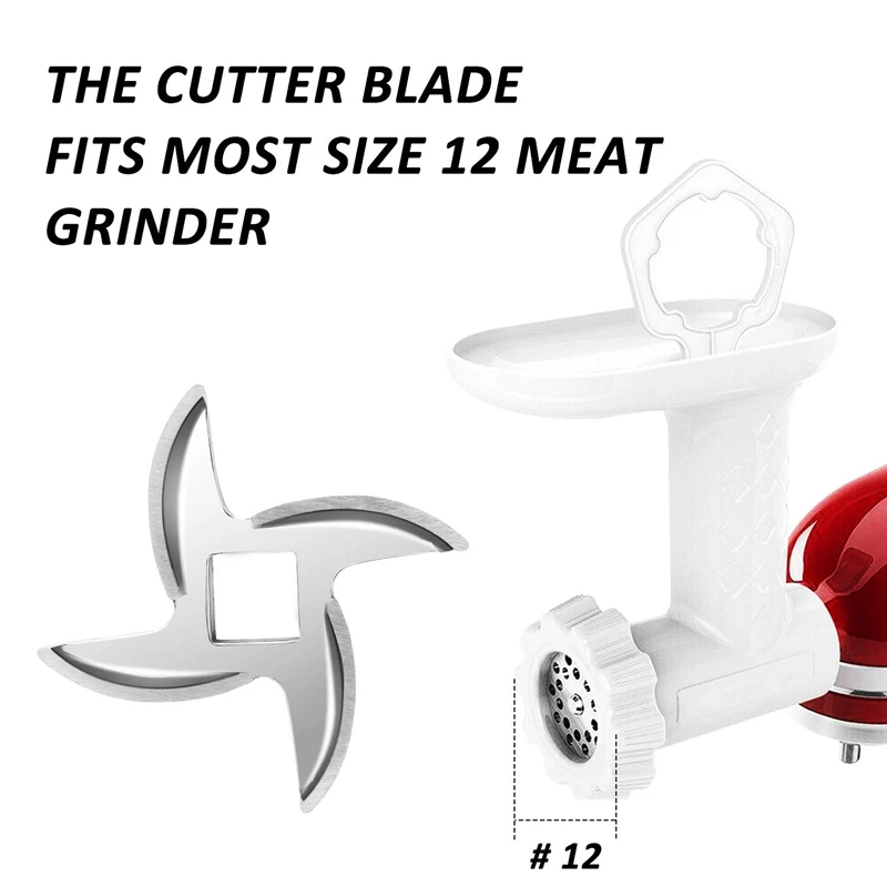 2. Совместимость: лезвие для измельчения мяса подходит для мясорубки размером 12 и, пожалуйста, проверьте размер вашего настоящего ножа перед заказом; Ни одна часть