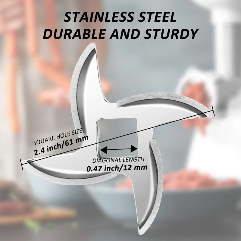1. Материал и размер: лезвия мясорубки изготовлены из нержавеющей стали, прочные и прочные, они могут удовлетворить ваши различные потребности в пище; Размер квадратного отверстия составляет 0,47 дюйма/12 мм, длина диагонали 2,4 дюйма/61 мм