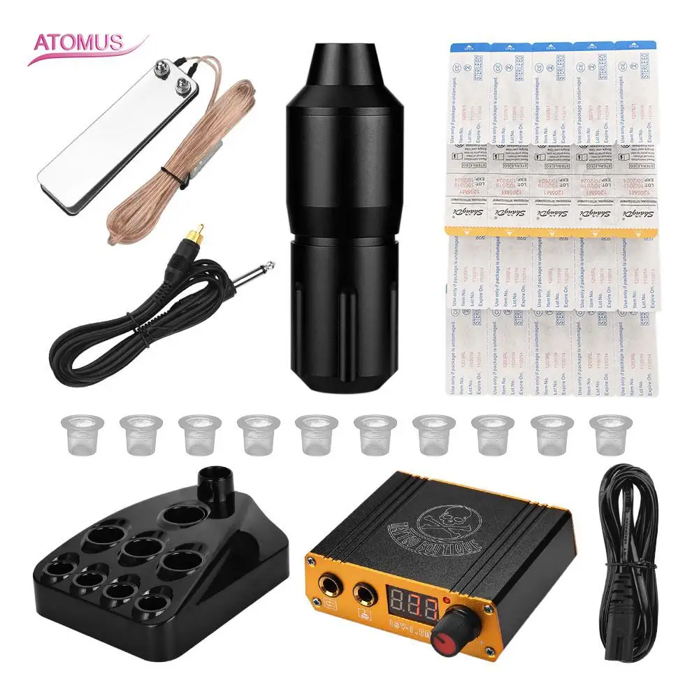 1 * Черная шестиугольная короткая ручка из алюминиевого сплава, одна машина для татуировки двигателя (включая линию крючка)