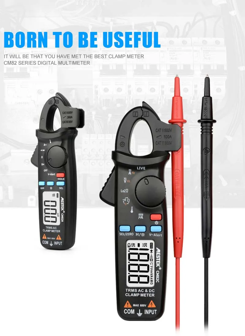 ● MESTEKCM82CПродукция серии имеет характеристики True-RMS (разрешение 1mA). Может эффективно удовлетворить потребности профессионалов.