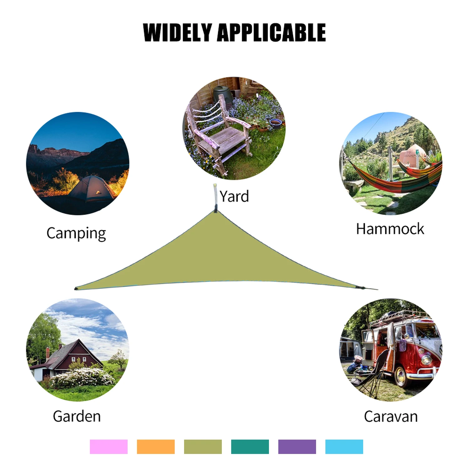 Навес для кемпинга изготовлен из полиэстера 210T, быстросохнущая ткань идеально подходит для дождевых дней, потому что не подведёт под стресс. Парус Навес может предотвратить высыхание, разрыв и выцветание, значительно продлить срок службы. Солнцезащитный козырек может значительно уменьшить температуру и солнечный свет в затененных местах в летнее время, идеально подходит для патио, бассейна, балкона, автостоянки и т. Д.