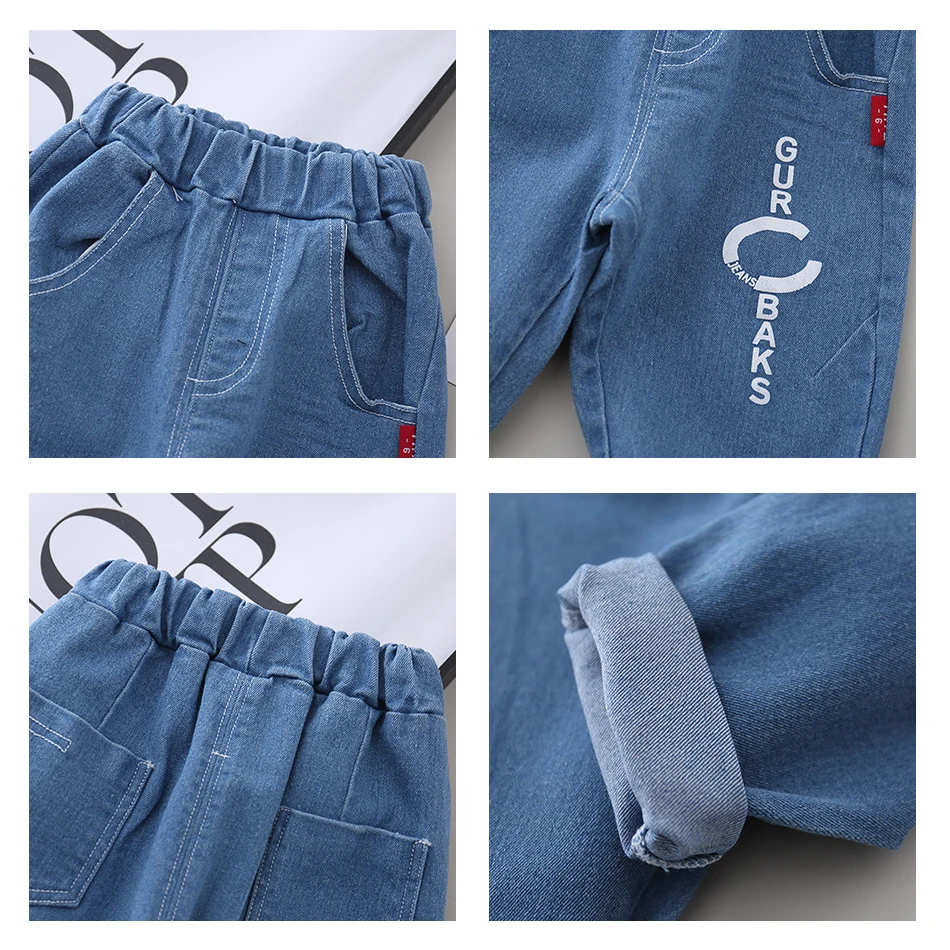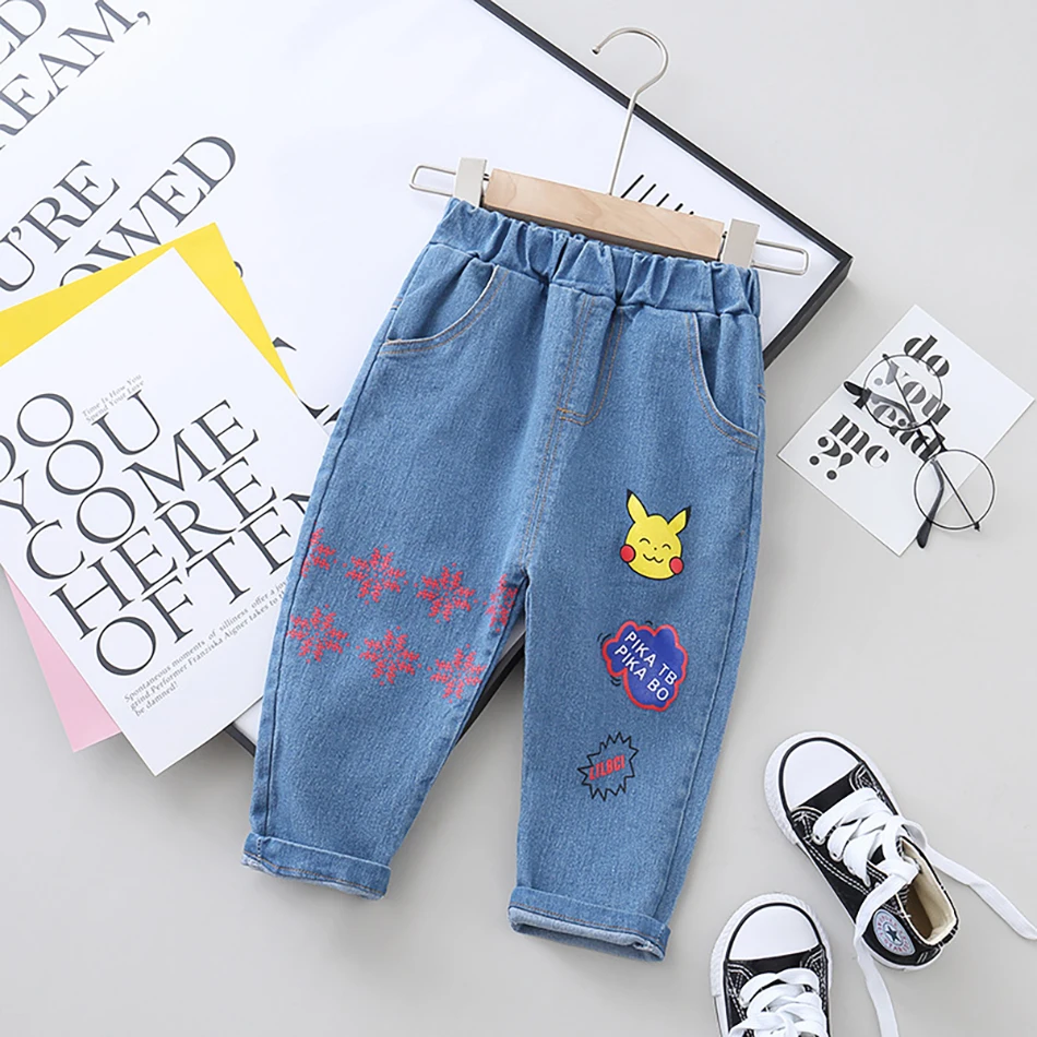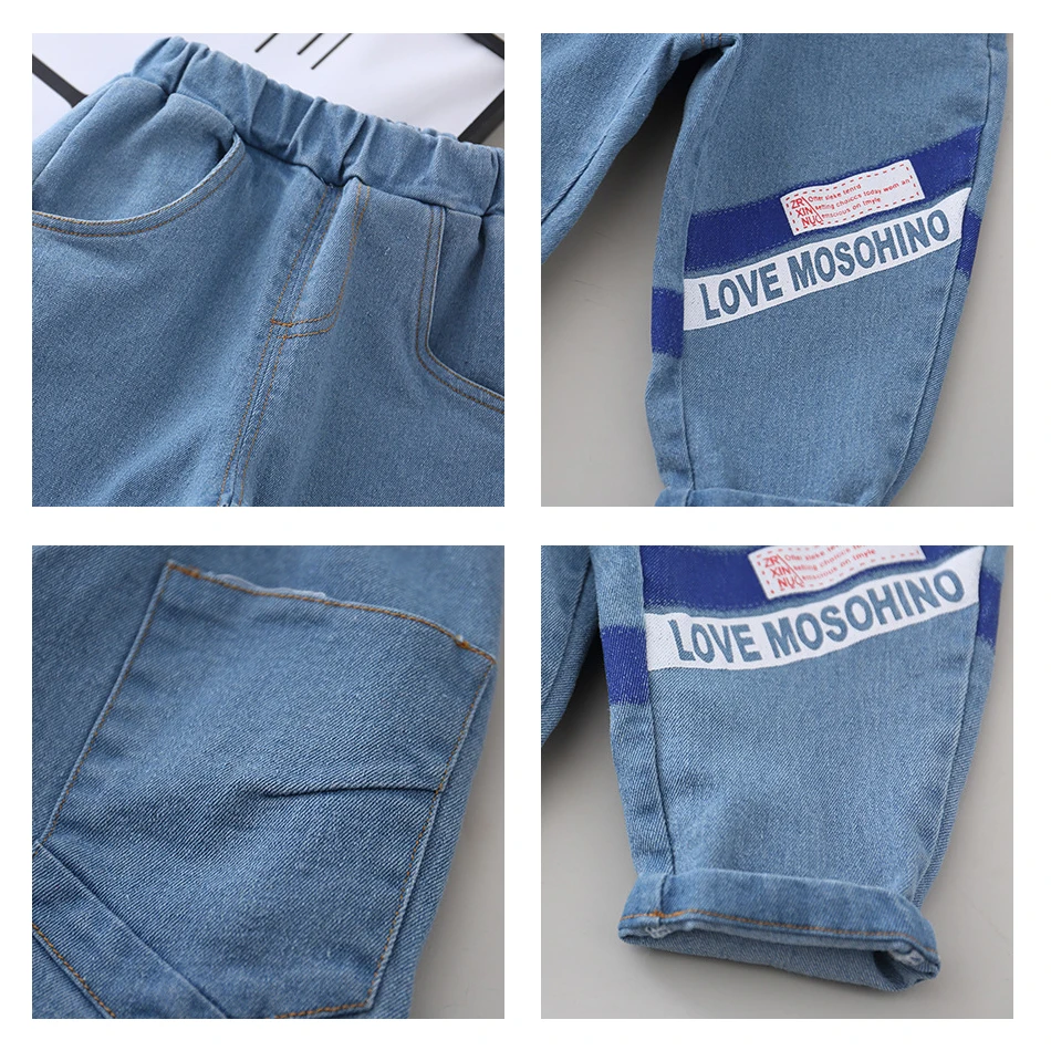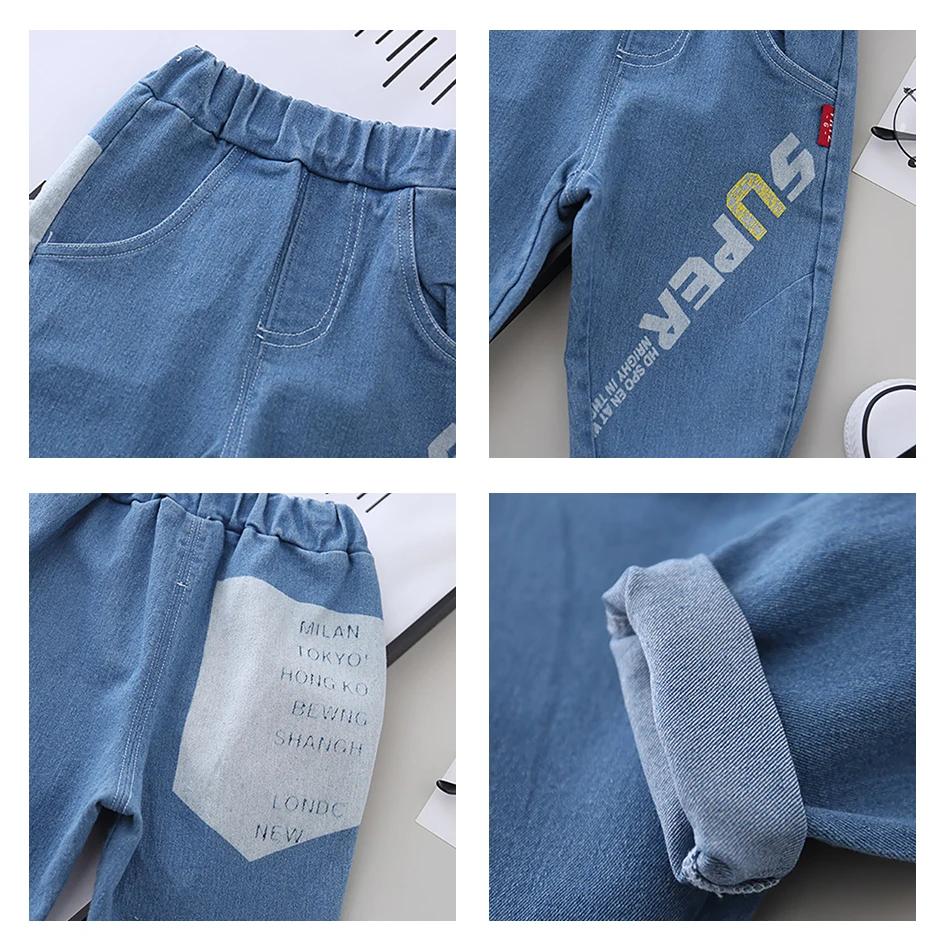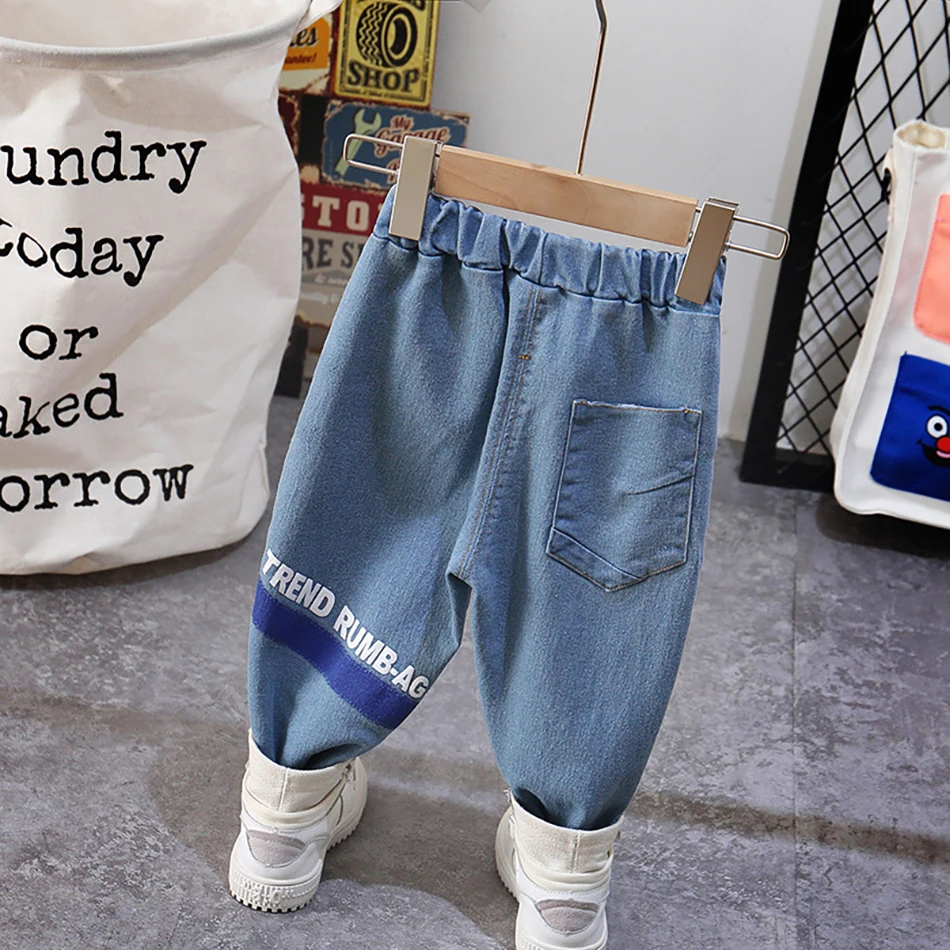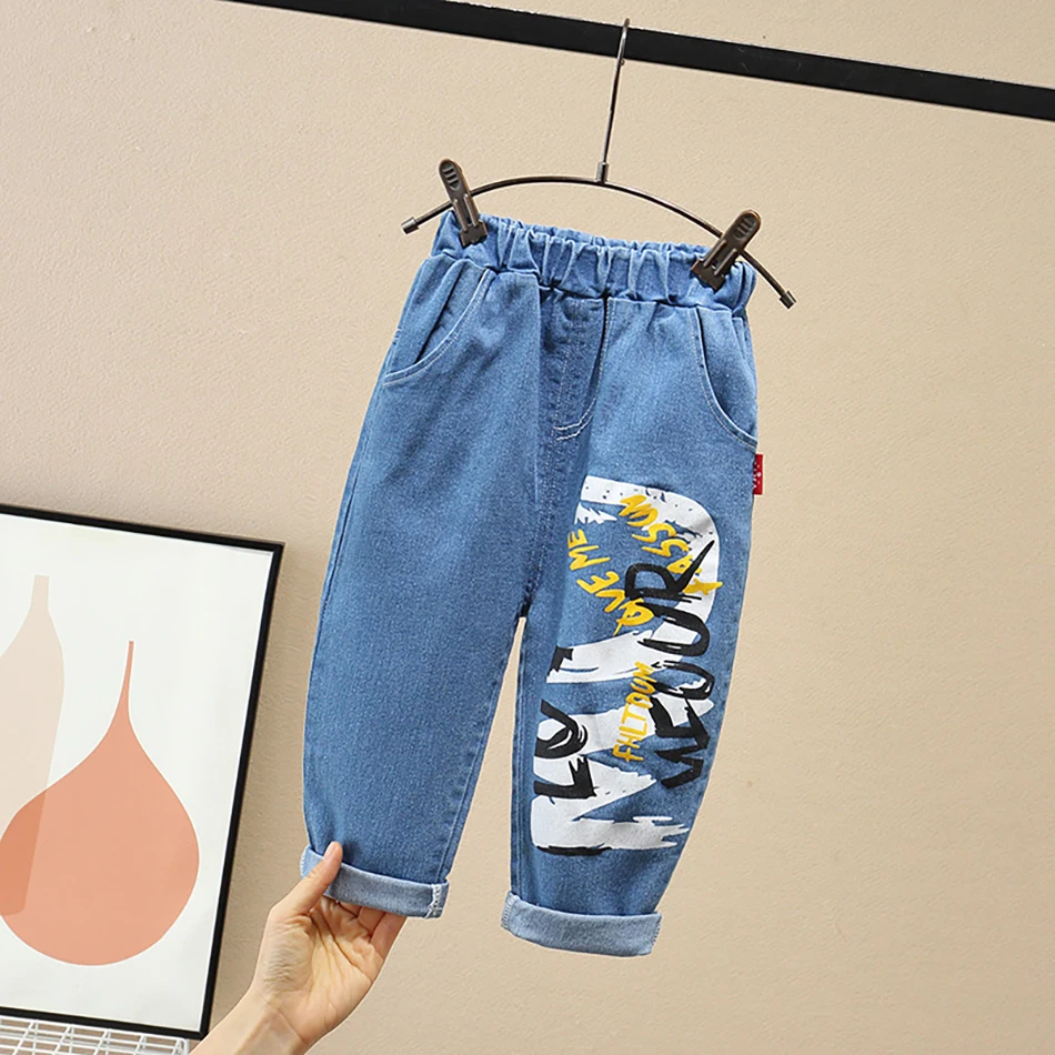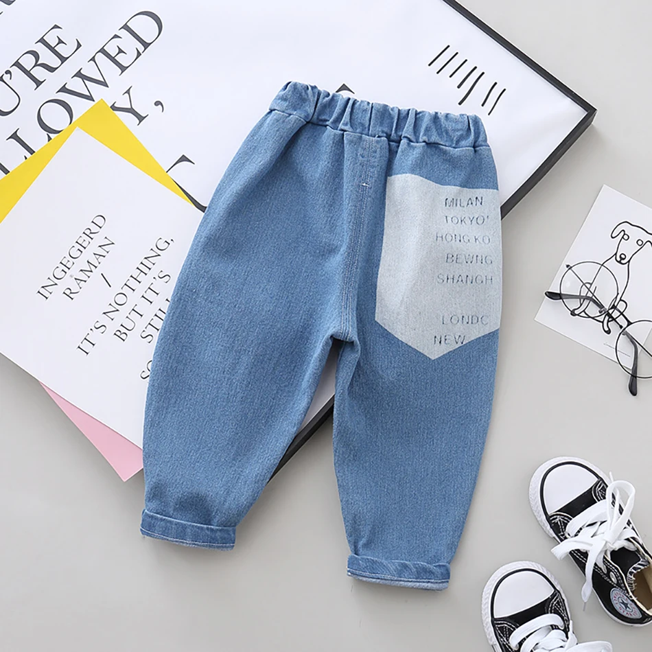2020 детские джинсы брюки для мальчиков и девочек Детские рваные джинсы с буквенным принтом детские мягкие джинсовые штаны с рисунком одежда для малышей
