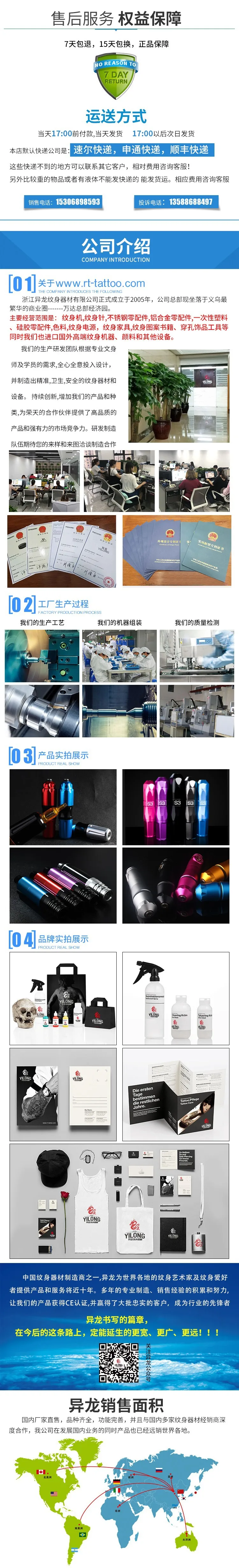 Our proud products include tattoo machines, tattoo needles, stainless steel spare parts, aluminum alloy spare parts, disposable plastic, silicone spare parts, color materials, tattoo power supply, tattoo furniture, tattoo pattern books, perforated jewelry tools, etc. At the same time, we also import foreign high-end tattoo machines, pigments and other equipment. Our sales team, starting from industry, sincerity and enthusiasm, provides comprehensive, fast and efficient services to our customers.