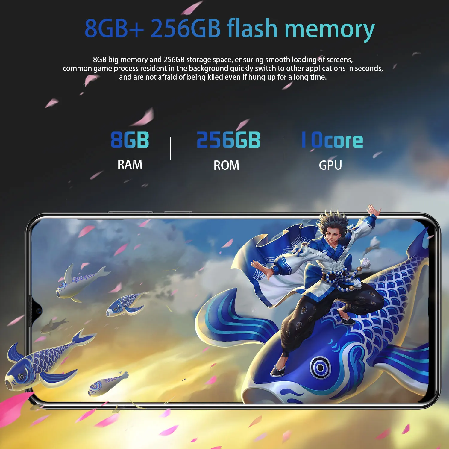 Новый 6,7 дюймов P46 Pro капли воды экран Смартфон Snapdragon 855 10-ядерный 8 Гб 256 5600 мА/ч, 5G Android 10 Global мобильный телефон