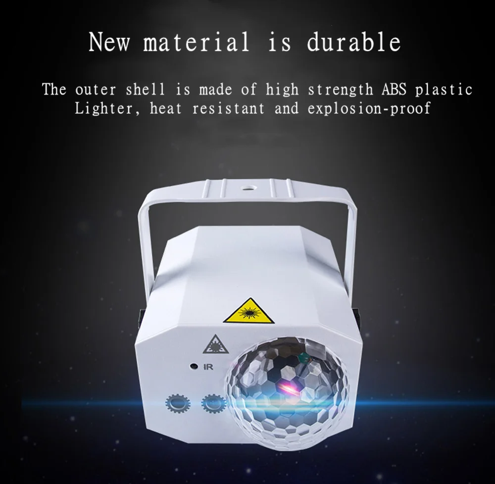 【Feature】 Изготовлен из высококачественных материалов, тонкой работы и высокой прочности. Различные режимы могут удовлетворить различные потребности, включая ручное управление, активацию звука, автоматическую вспышку и т. д. Используйте пульт дистанционного управления, чтобы легко настроить дискотечный светильник. Объем небольшой и компактный, внешний вид красивый, эффект хороший, а металлический корпус имеет хороший эффект отвода тепла. Угол кронштейна регулируется и может быть установлен на земле или подвешен на стене. Очень подходит для ди-джеев, баров, клубов, катышков, КТВ, семейных встреч, свадеб, фестивалей и т. д. 【Спецификация】 Цвет: черный/белый (по желанию) Входное напряжение: AC90-240V, 50-60 Гц Стандарт Вилки: E-U, U-S вилка (опционально) Рабочая среда: 10-30 ℃ (в помещении) Мощность: 10 Вт Светильник источник света: светодиодный 3 * RGB + 532nm зеленая/650nmred лазерная Мощность лазера: Зеленый 50 мВт, красный 200 мВт Аккумулятор: CR2025 3 В (для пульта дистанционного управления) Размер продукта: 190*130*90 мм/7,48*5,12 * 3.54in Примечание: Класс водонепроницаемости этого продукта только IP20. Не подходит для использования на улице в дождливые или снежные дни. Избегайте попадания воды или влаги. Из-за различных настроек экрана и световых эффектов фактический цвет проекта может немного отличаться от цвета, показанного на картинке. Ввиду того, что замеры проводились вручную, пожалуйста, примите во внимание, что в связи с ручными измерениями 0,5-1 дюйм (ов). 【Packing list】 1 * светодиодный светильник 1 * пульт дистанционного управления 1 * Руководство пользователя