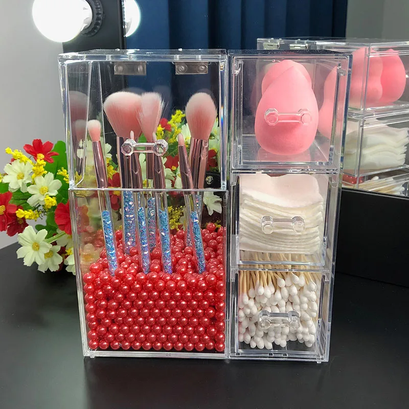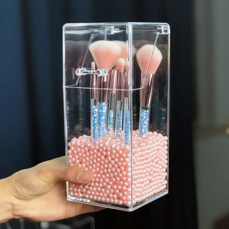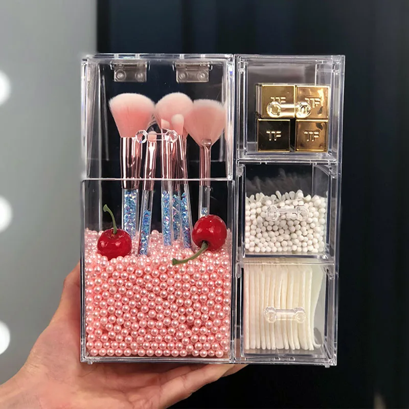 Прозрачный ящик для хранения кистей для макияжа Органайзер акриловая Косметика менеджер коробка для хранения ювелирных изделий офисные принадлежности визитная карточка