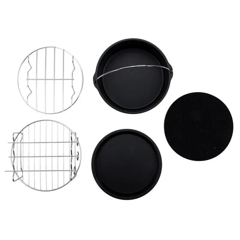 Многофункциональность: выпекайте сладкий торт и хлеб в бочке для торта, готовьте вкусную пиццу в сковороде для пиццы, Максимизируйте поверхность для приготовления пищи с металлическим держателем и сделайте шашлыки с многофункциональной стойкой! Защитите ваши домашние поверхности с помощью силиконового коврика! Найдите больше функций из вашей воздушной фритюрницы и сделайте свою жизнь более красочной.