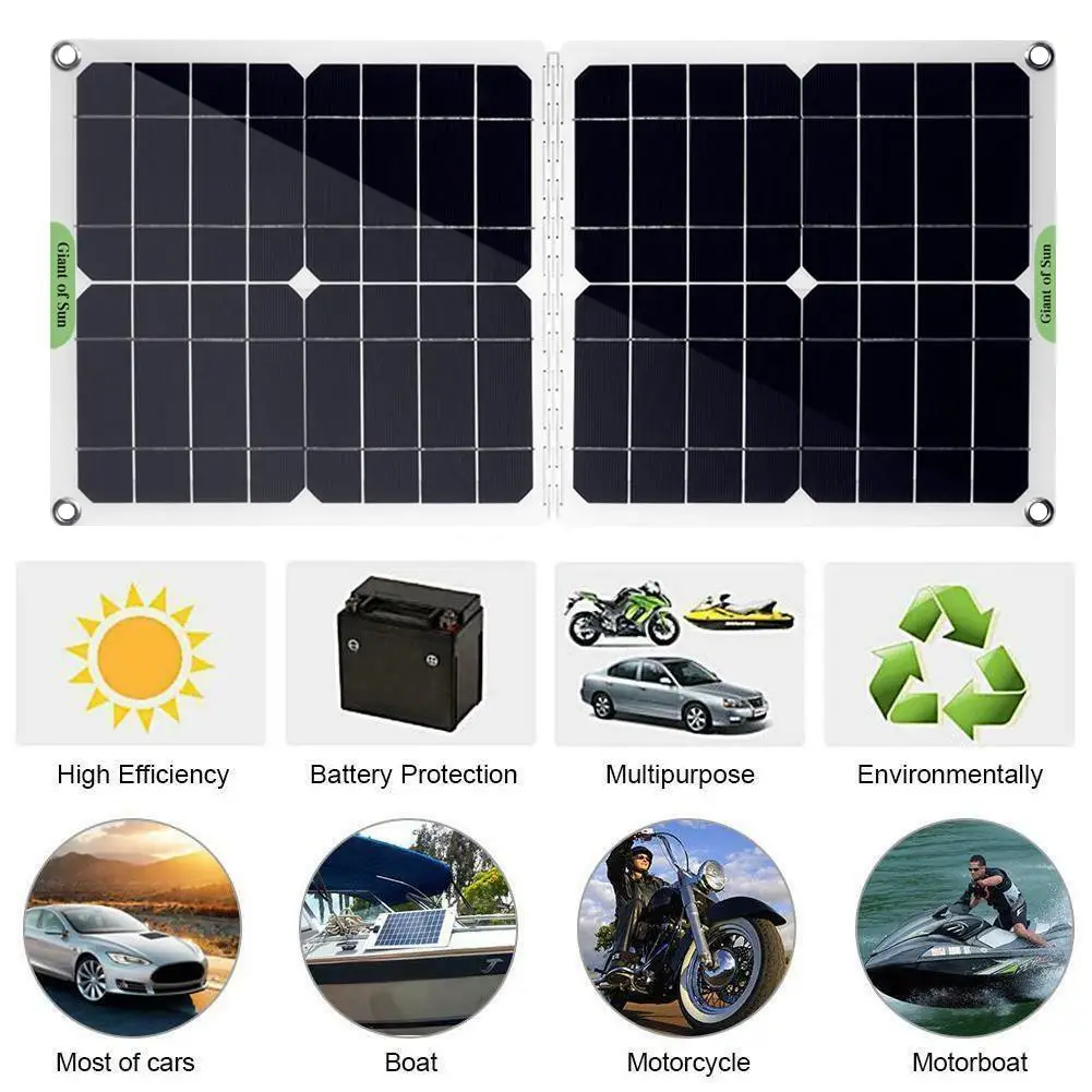 Особенности:Эта панель солнечных батарей комплект нового метод преобразования в два раза рабочая сила солнечного выхода с одной и той же области и мощности.2-полосная выходное напряжение солнечной энергии делится на 18v & 9v 12V & 6V переключения передач. В соответствии с одной и той же области питания, выходной ток солнечная панель пары, что позволяет заряжать автомобили, мобильные телефоны, компьютеры и батареи в одной и той же среде. Повышение эффективности и удвоенная скорость зарядки.Продукт является гибким и складной может быть присоединен к гладкую поверхность с определенной амплитуды (например, устанавливаемый на крыше автомобиля).Характеристики (о):Материал: PET + монокристаллического кремния ячейкиВодонепроницаемый Рейтинг: IP65Коэффициент конверсии солнечной энергии: 20%Pmax: 100WVpmax: 18 В/12 В/9 В/6 вNOCT (Номинальная рабочая температура камеры): 40-85 °CРазмеры: 575x280x2.5 мм/22.64x11.02x0.1inМакс Солнечный Входной сигнал:Перезаряжаемую батарею 12V, аккумуляторную батарею самым высоким 23V24V батарея в тех случаях, когда высокий 46VВыравниванием: 14,4 V/14,2 V/14,6 VПлавающего заряда: 18 в/12 В/9 В/6В/5 вольт постоянного тока (по умолчанию, регулируемый)USB Выход напряжение:Выход постоянного тока: 18V 3.81AНапряжение на выходе USB: 5В 3.8A (макс)TYPE-C мощность на выходе: 5 В пост 3.8AСамо-потребляют по уровню поверхности:<10mAОмывателем температуры:-35-60 ℃Цвет: черный10A контроллера:Особенности:1. Встроенный промышленный микро-контроллер.2. Полностью 4-ступенчатая ШИМ Контроллер заряда.3. Настройка одной кнопки, цифровой дисплей, функция автоматической памяти.4. Двойная защита от обратного тока mosfet, низкая теплоотдача.5. Встроенная защита от короткого замыкания, защита от открытого замыкания, защита от обратного хода, защита от перегрузки.Технические характеристики:Модель: ШИМНизкое Напряжение зарядки: 18,8 VПоплавковый заряд: 17,4 вНапряжение на выходе USB: 5В/3AСамо-потребляют по уровню поверхности: <10mAОстановка разряда: 11,4 вНапряжение: 12 В/24 В постоянного токаМакс солнечная Входная сила по уровню поверхности: <30V• Сила тока: 10AНоминальный рабочий ток: ≤ 20AРазряда Повторное подключение: 10,2 VРабочая температура: -35 ℃ ~ 60 ℃Выход напряжение: 12В/24В Автоматическое различие напряженияУпаковочный лист:1 * Складная 100 Вт Панели солнечные с аксессуарами1 * Панели солнечные Батарея контроллер заряда1 * Руководство пользователяПримечания:1. Пусть солнечная панель солнечной батареи уход за кожей лица с солнцем, и светодиодный индикатор выхода коробка загорается красным цветом. Затем солнечная панель начинает работать. USB розетка выход 5,2 v напряжение постоянного тока, DC круговой розетка выход 18v Прямая зарядка с помощью разъема напряжение (В тех случаях, когда вы имеете обратиться к блок переключатель, H Блокировка выходного напряжения постоянного тока 12v & 18V-L Блокировка постоянного тока Выходное напряжение 6В и 9v.2. Этот продукт не рекомендуется заряжать мобильный телефон непосредственно. Она должна использоваться вместе с зарядной банка, который может использоваться для зарядки мобильный телефон, планшет, компьютер и другие электронные продукты.3. Подключите к аккумулятору, подключите зажим типа крокодил постоянного тока с выходным напряжением постоянного тока 18 в (20 в, когда нет нагрузки). Примечание: положительные и отрицательные зажимы типа «крокодил» не должны быть подключены или тронуты в ис