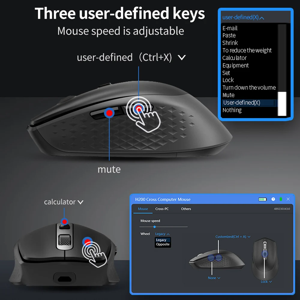 Работает с клавиатурой H200 для управления несколькими компьютерами. Клавиатура будет автоматически следовать за мышью, чтобы одновременно управлять несколькими компьютерами.