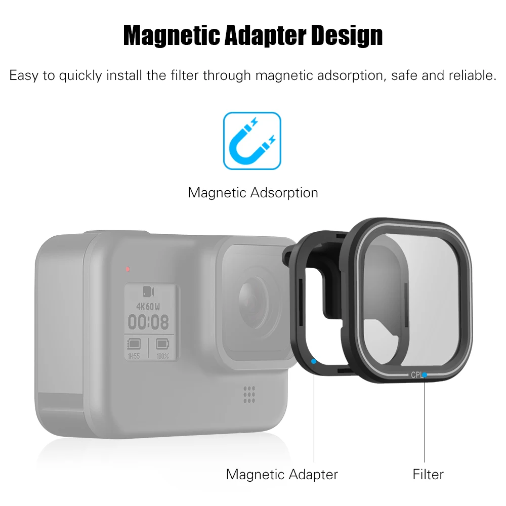 Набор фильтров для камеры CPL ND8 ND16 ND32, защита для объектива с магнитным адаптером, аксессуары для объектива, совместимы с GoPro Hero 8