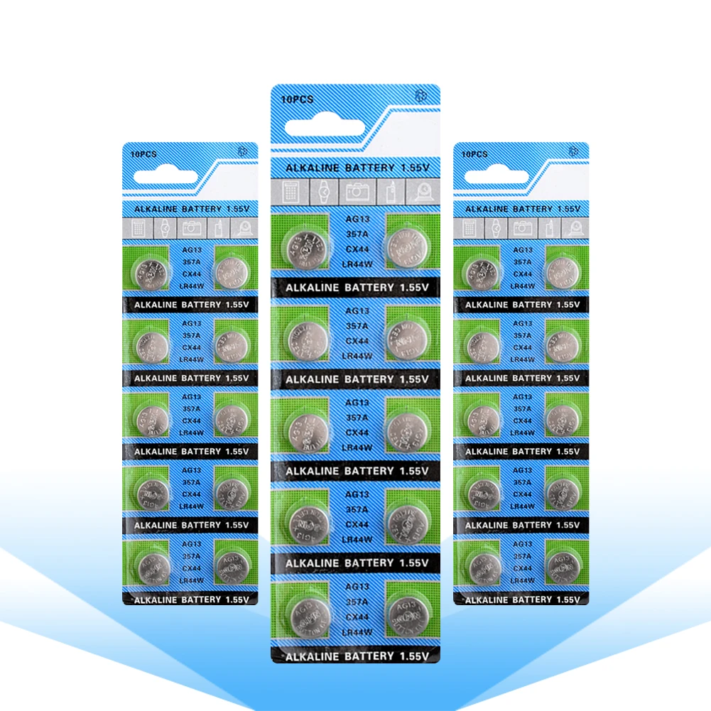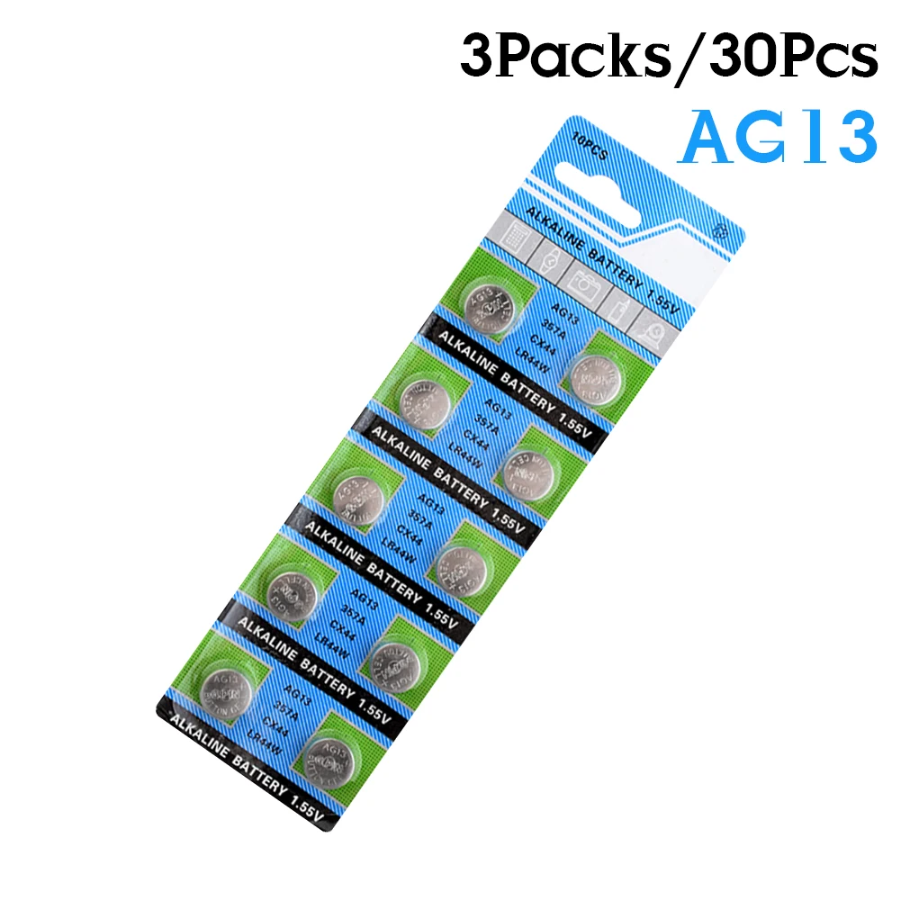 30 шт. A76 AG13 Alkaine/нержавеющая сталь часы батареи D303 D357 D76A G13 G13A GP76 GPA76 GS14 L1154 LR1154 LR44 MS76 PX675A кнопочный элемент