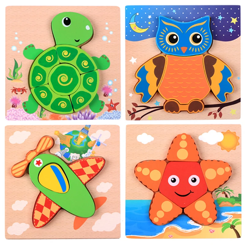Детские деревянные развивающие игрушки Монтессори, 3D пазл, разведка животных, Детские Логические игрушки, детские формы Танграм обучающий пазл