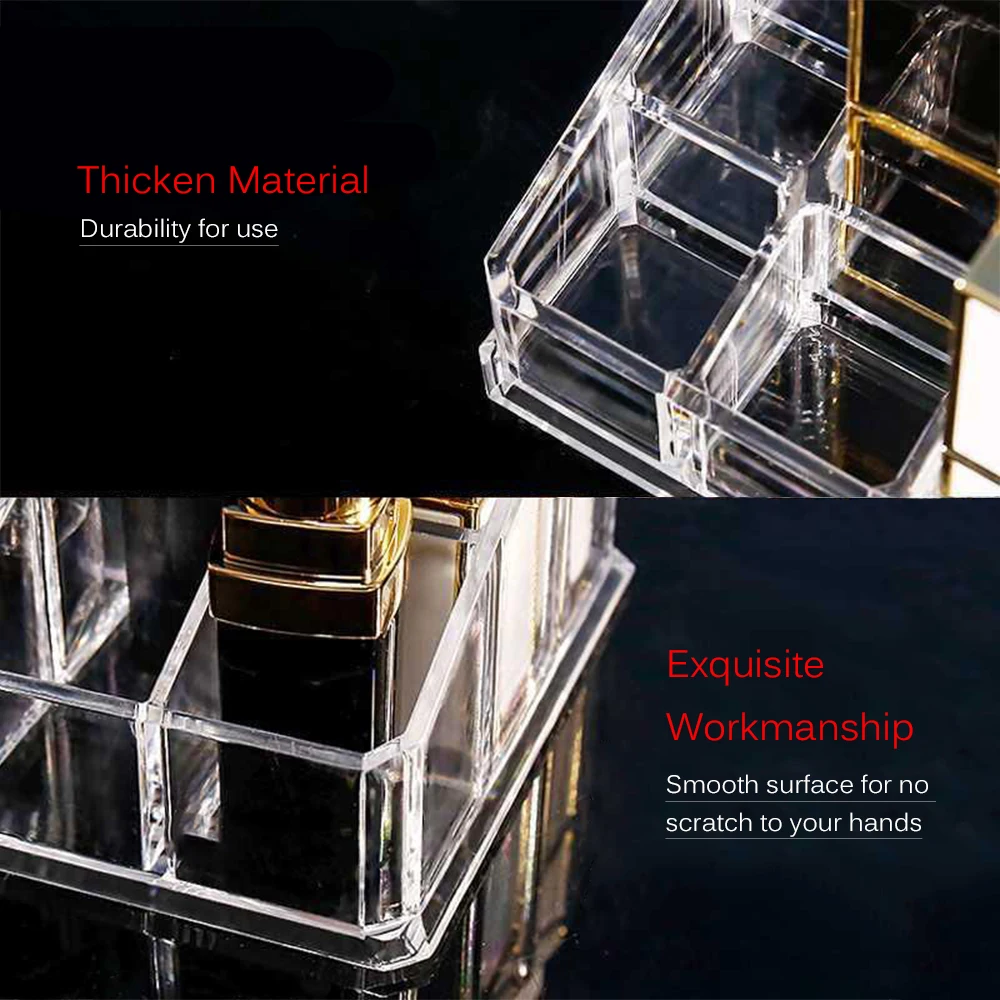 Этот продукт отличается изысканными, прочными и практичными характеристиками. Вмещает до 15 помад. Это идеальный предмет, расположенный на вашем столе, который отображает и хранит ваши любимые помады.
