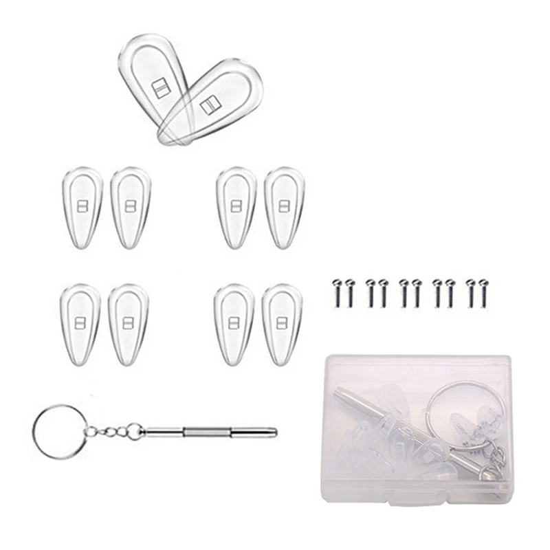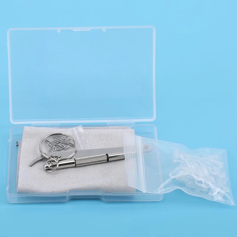 Size:Nose Pads Length*Width:1.4*0.7cm,Tweezers Length:7.9cm,Screwdriver Length:6cm,Box Length*Width*Height:9.5*6*1.5cm,Error about 1cm
