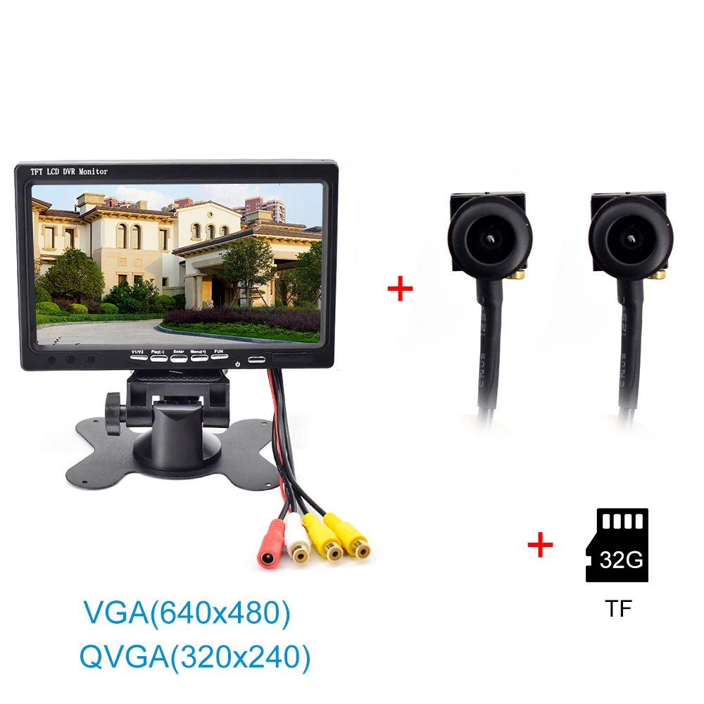 Размер экрана: 7 Размер TFT LCD дисплей Видео fomat: NTSC/PAL Разрешение: 640*480(VGA) /320*240(QVGA) Дисплей меню: упрощенный китайский/традиционный китайский/английский Хранение: sd-карта (поддержка 32G) Напряжение: DC5V/DC35V Вход: AC220/110V Выход: DC12V/1000mA