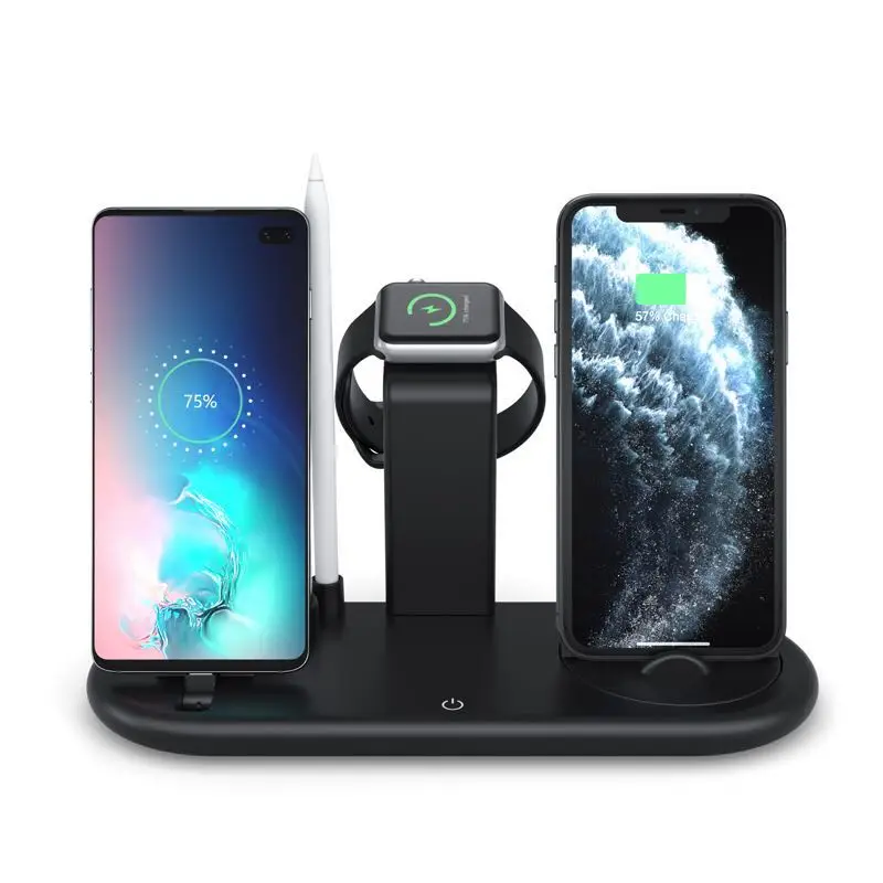 -Беспроводное зарядное устройство 10 Вт, можно заряжать, даже если вы носите чехол для телефона, Индукционное обновление, расстояние индукции составляет 0,8 см, телефон можно заряжать горизонтально и вертикально -С подставкой для зарядки часов, подходит для всех серий часов Apple -Зарядное устройство с вращением на 360 °, зарядное устройство для iphone/Type-C, беспроводное быстрое зарядное устройство, емкостная ручка, Подставка для зарядки умных часов, база для беспроводной зарядки наушников все в одном. -Беспроводная зарядка совместима с различными товарами, что удобно и быстро, и не влияет друг на друга. Разные мобильные телефоны соответствуют разным портам зарядки, а порты могут соответствовать источнику питания большинства мобильных телефонов на рынке. -При зарядке, эта подставка позволяет ваш любимый мобильный телефон встать и зарядки, таким образом, что оно также свидетельствует о том, что с уникальным во время зарядки. Удобно и красиво. Он также может быть использован как мобильный телефон держатель без зарядки, освободив руки для того чтобы положить его горизонтально. Поддерживает вертикальное размещение! -С помощью базы вы можете легко получить доступ к порту базового разъема для синхронной зарядки. -Зарядная база Bluetooth гарнитуры поддерживает наушники первого, второго и третьего поколения, которые можно заряжать сразу же -Складное бесконечное зарядное устройство справа может использоваться для зарядки телефона или в качестве ночсветильник, светильник в темноте, зарядка и светильник не задерживаются. -Задняя часть беспроводного зарядного устройства имеет два порта Type-C и выходной порт USB. Его можно использовать путем подключения, а ток быстрее и стабильнее.