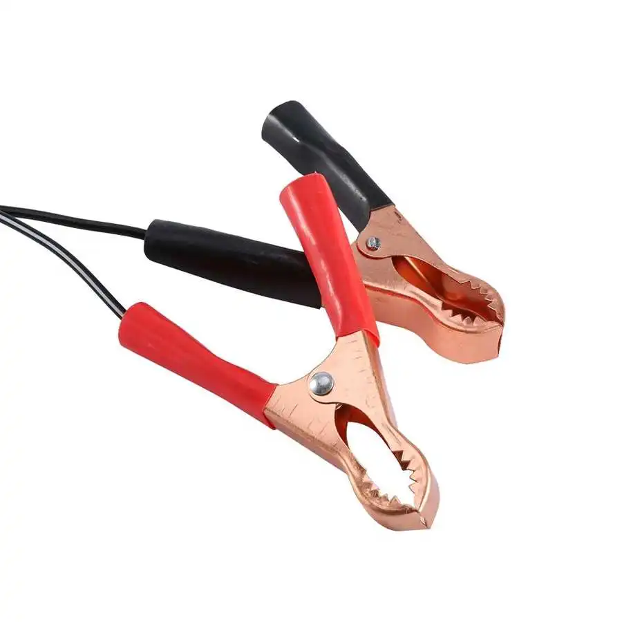 2. Работает путем подключения зажимов к автомобильному аккумулятору 12 В.