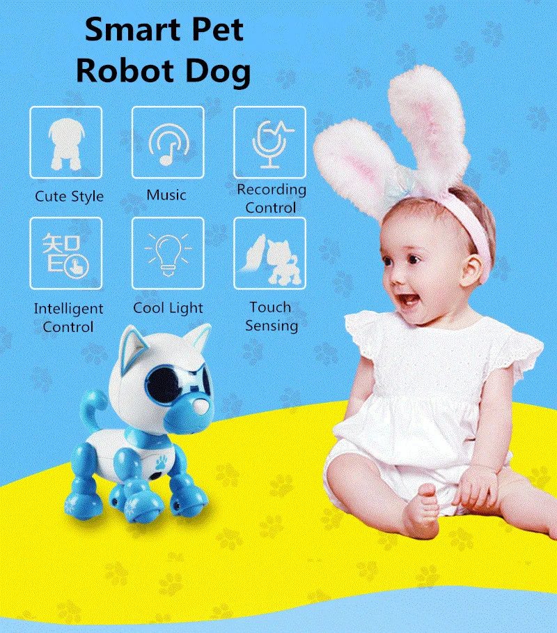 Наша собака-робот никогда не подведет вас и всегда будет готова к игре и реагирует на любовь и внимание. Маленький щенок хочет поиграть и рассмешить вас. Чем больше вы играете, тем счастливее они будут. Погладьте их достаточно. [Сенсорная Функция] у этих интерактивных щенков светильник ются глаза и реагируют, когда вы долго глажете их головой. Щенок очень наслаждается прикосновением. [Функция записи] Мы чувствуем-наш милый щенок отлично подходит для всех детей, потому что у нашего щенка есть три вида звуков. Развивайте у детей способность к выражению мнений и общению. [Недовольная/счастливая функция] Если Вы сильно продуваете нос щенка, щенок будет недоволен. Когда вы аккуратно выдуваете нос щенка, щенок очень понравится и поцелует вас. Щенок будет доверять вам, и вы сможете поделиться своими историями, секретами и эмоциями вместе! [Функция сна]: щенок тоже будет уставать. Когда вы бережно кладете щенка в руку, он закроет глаза и уснет. Безопасность и здоровье: получать удовольствие от владения собакой без хлопот владеть собакой, избавиться от беспорядка и угроз для здоровья, создать хорошую семейную атмосферу