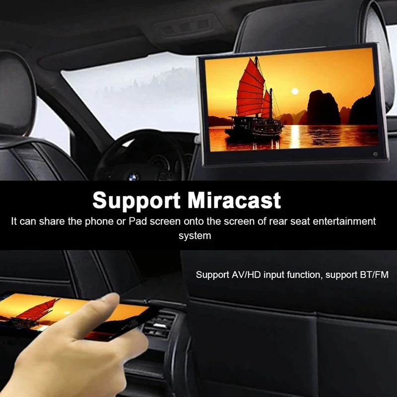 Поддерживает Miracast, он может поделиться телефоном или Pad sn на sn развлекательной системы заднего сиденья.