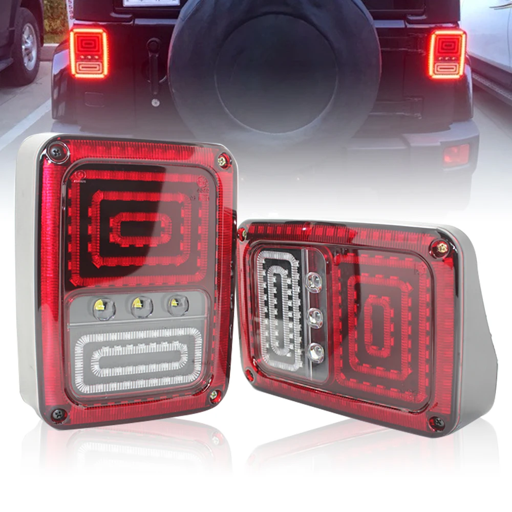 LED Tail Lights For Jeep Wrangler JK Brake Runing Rear Reverse Lights DRL Turn Signal Back Up Taillights 2007-2017