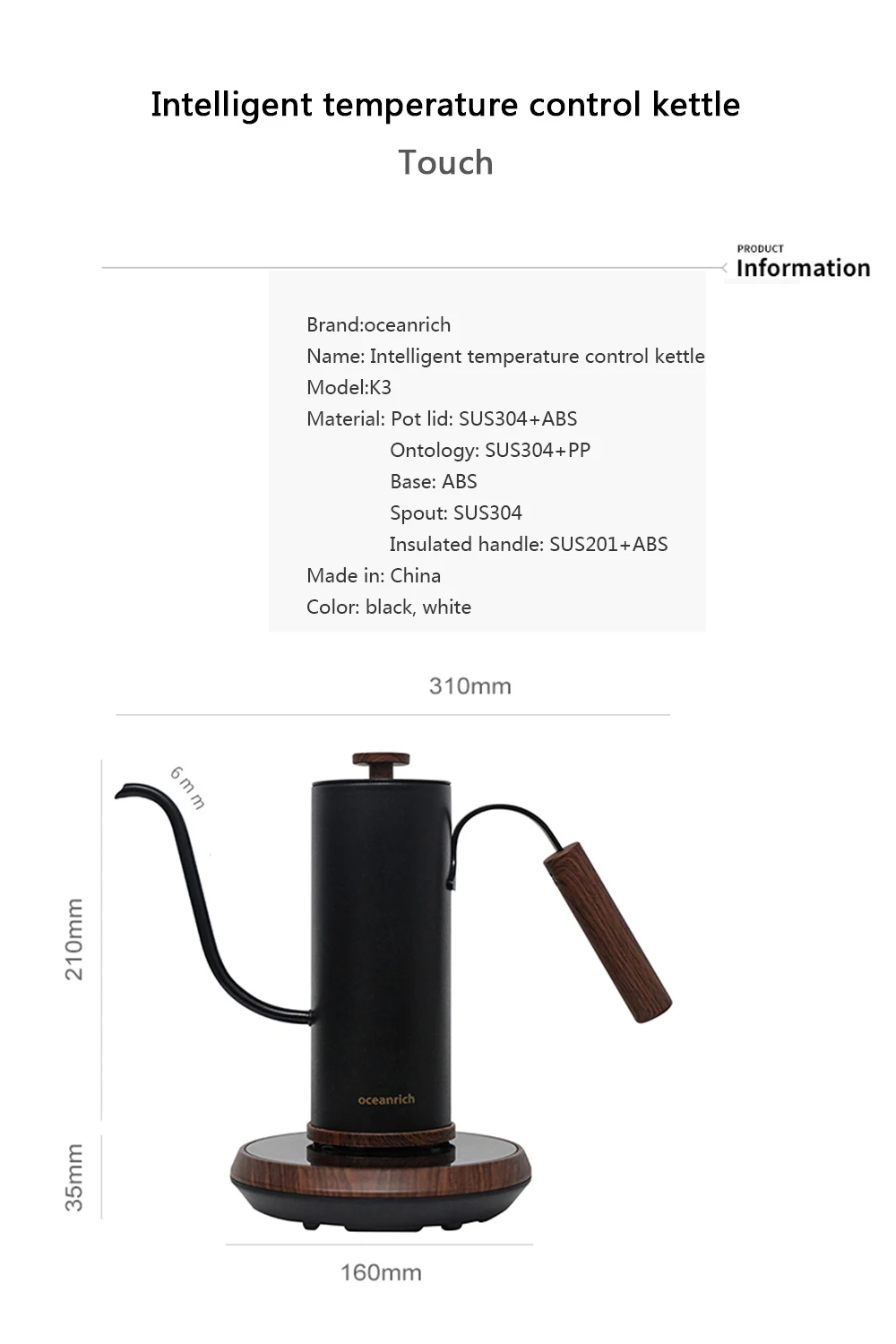 Бренд: Oceanrich Название: умный чайник/сенсорный Модель: K3 Мощность: AU220V/800W Емкость: 400 мл Материал: SUS304 + ABS + PP Цвет: черный, белый Вилка: вилка AU