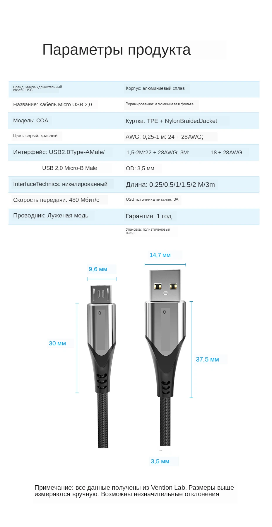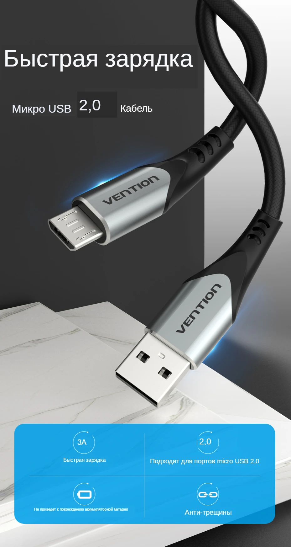 Благодаря скорости зарядки до 3 А кабель micro-usb заряжается быстрее, чем большинство стандартных кабелей micro usb. Скорость передачи данных до 480 Мбит / с через USB 2.0. Не тратьте время на ожидание окончания зарядки телефона.