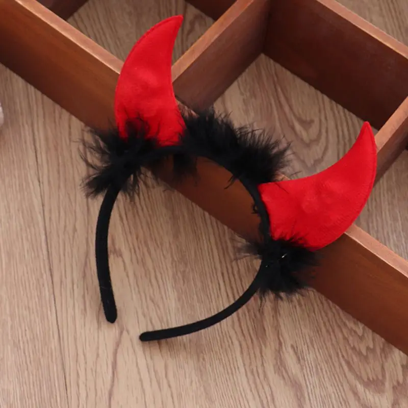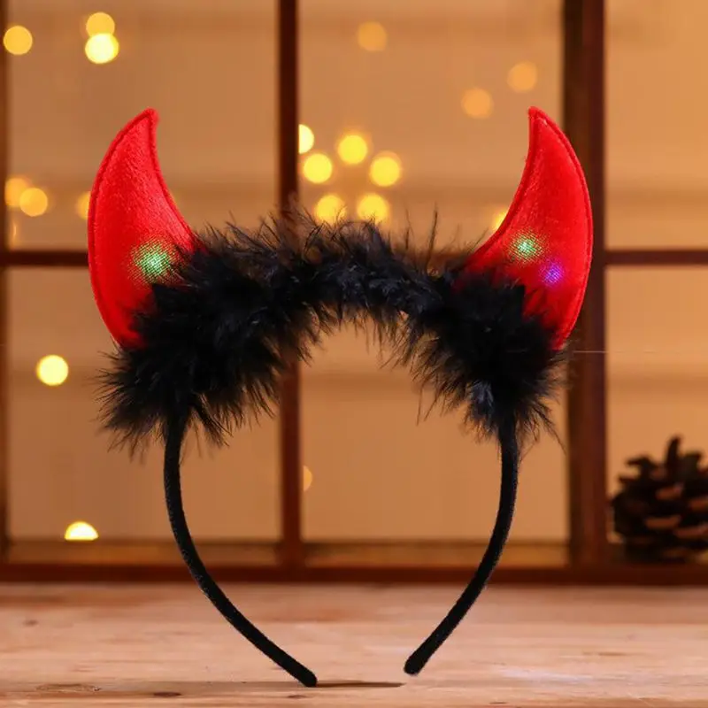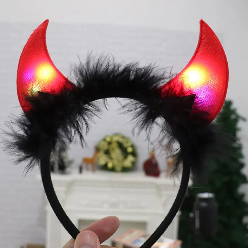 Хэллоуин Светодиодный светильник дьявол Бык Рог головная повязка пушистый перо плюшевый Косплей обруч для волос фестиваль вечерние реквизит Забавный головной убор