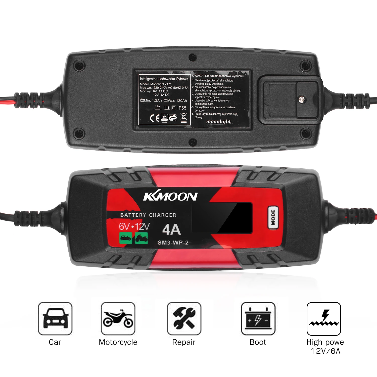 Широкий диапазон Применение--- Работает с 12 В/1,2 Ач до 12 В/120 Ач свинцово-кислотными батареями, AGM, GEL, SLA батареями, что означает, что он используется для батарей в автомобиле, грузовике, мотоцикле, газонокосилка, лодка, RV, внедорожник, ATV и многое другое.