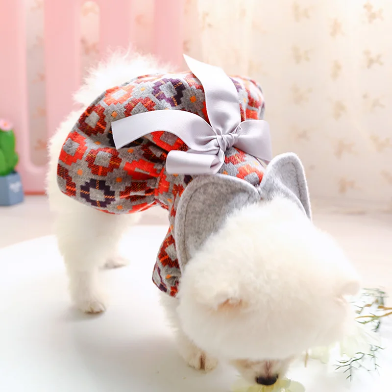 Ранняя осень, платья принцессы для собак, серая бабочка, бант, шерстяная одежда для щенков, плюшевое платье для собак XS, S, M, L, XL