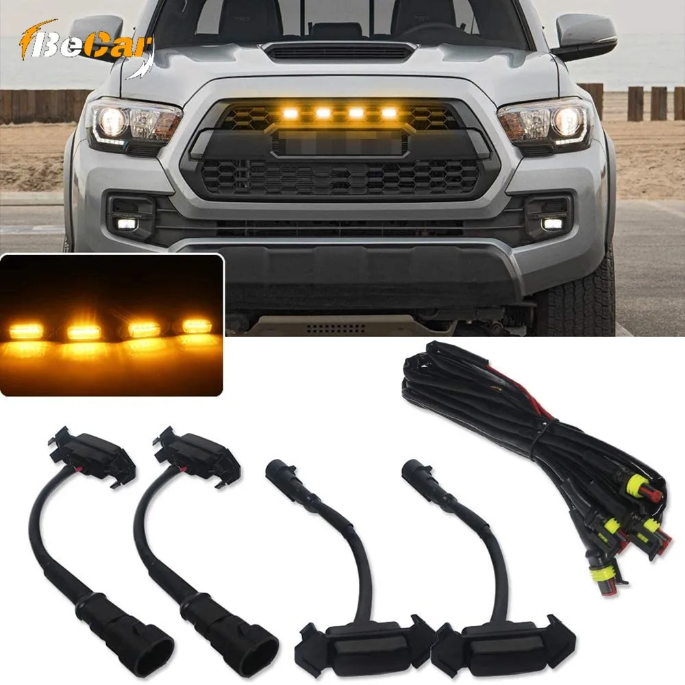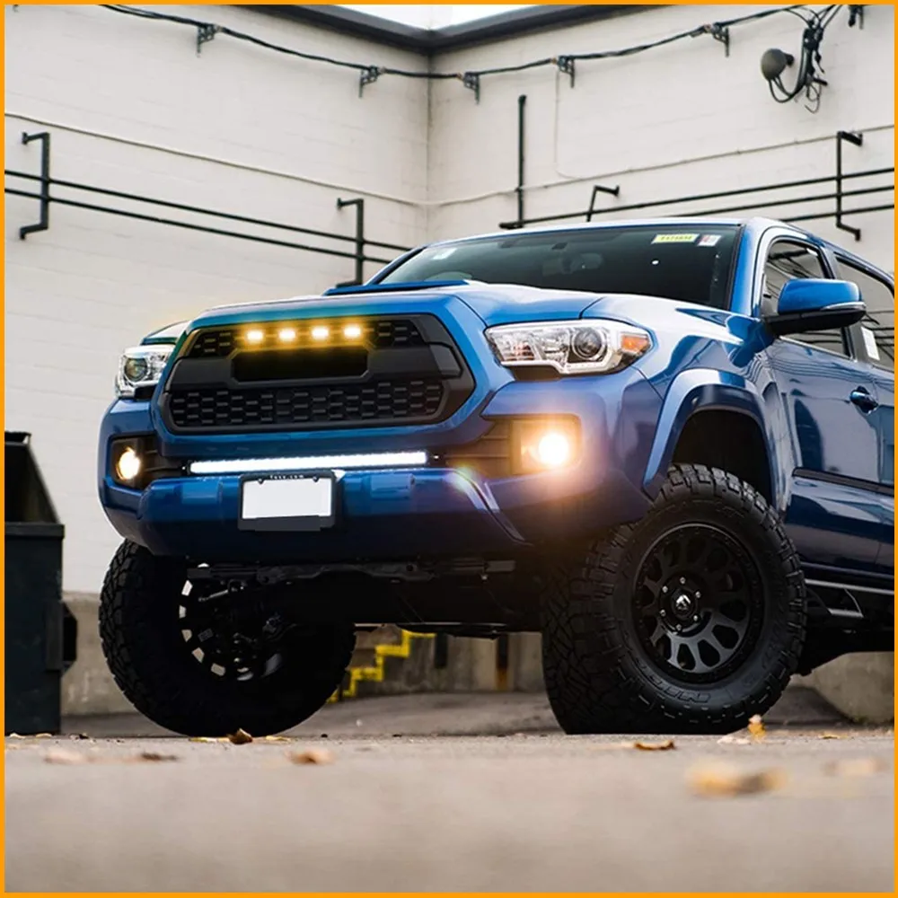 Совместимость с 2016-up Toyota Tacoma с aftermarket TRD Pro решетка сетки только Этот полный Raptor стиль решетка светильник комплект поставляется с 4 шт. дымчатые линзы светодиодный гриль крепление лампы в сборе с жгут проводов Подходит Для aftermarket Tacoma TRD Pro grill mesh отверстия, чтобы излучать супер яркий белый светодиодный выход освещения Пожалуйста, обратите внимание, что этот комплект может свободно поместиться на гриле OEM и потребует клейкой ленты и/или клея, чтобы он подходил должным образомХарактеристики: