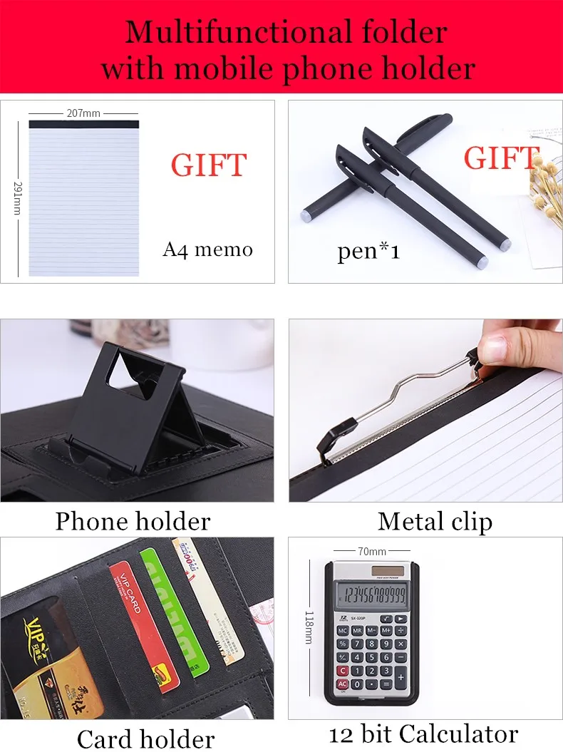 Размер: 32*25 см Материал: искусственная кожа Цвет: как на фото Емкость: A4 Note / Calculator / Money / Card и так далее Посылка: A: только папка B: Папка + 8-битный Калькулятор + памятка C: Папка + 12-битный Калькулятор + памятка Цвет: черный/красный/светильник синий/темно-синий/розовый Способ продажи: опт и розница Этот продукт является 100% новым, пожалуйста, будьте уверены, чтобы купить.