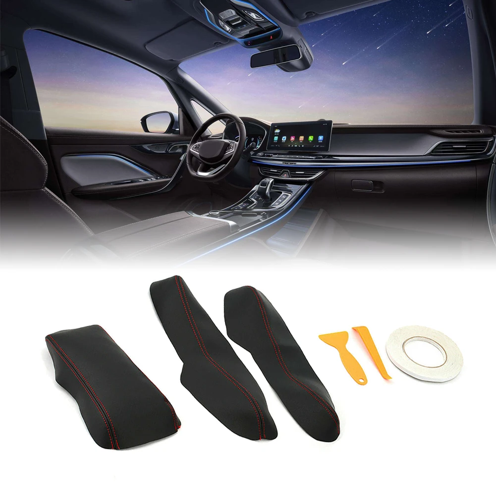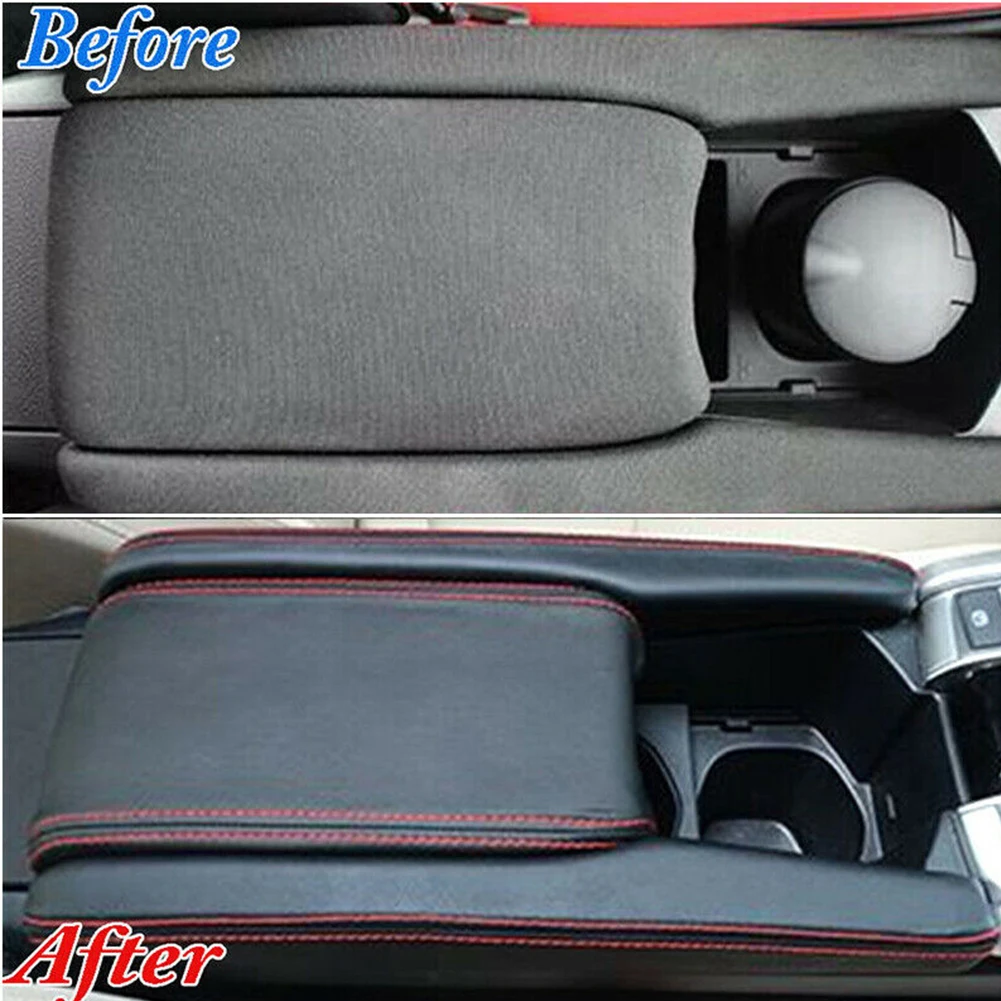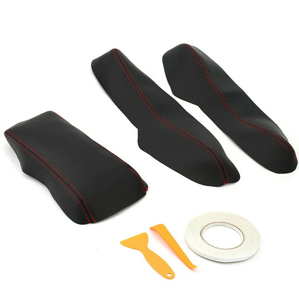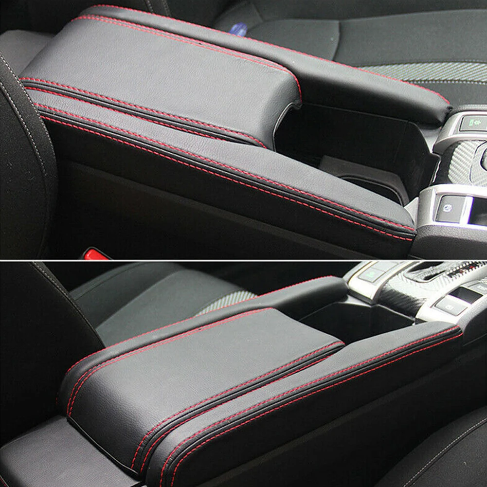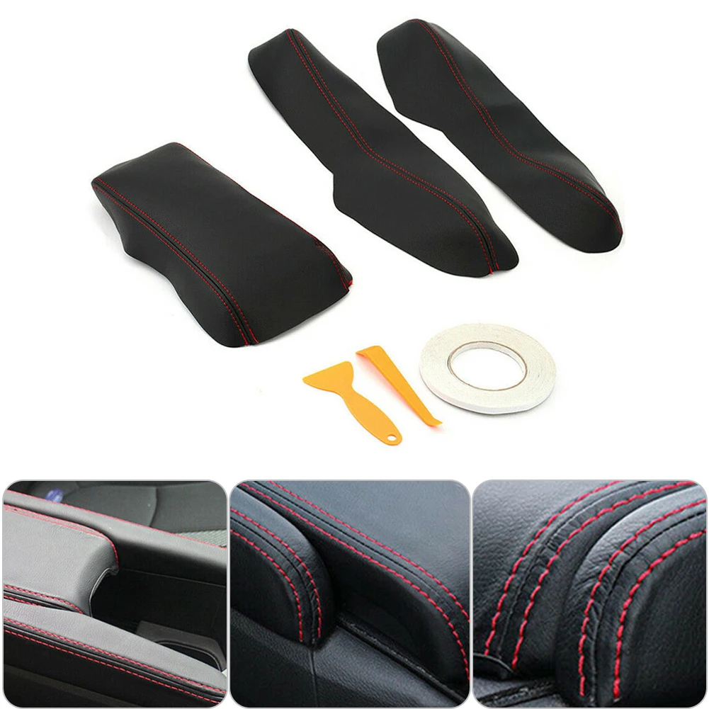 *2. 3pcs/Set Black&Red Leather Center Armrest Box Cover Trim for Honda Civic 2016-18.