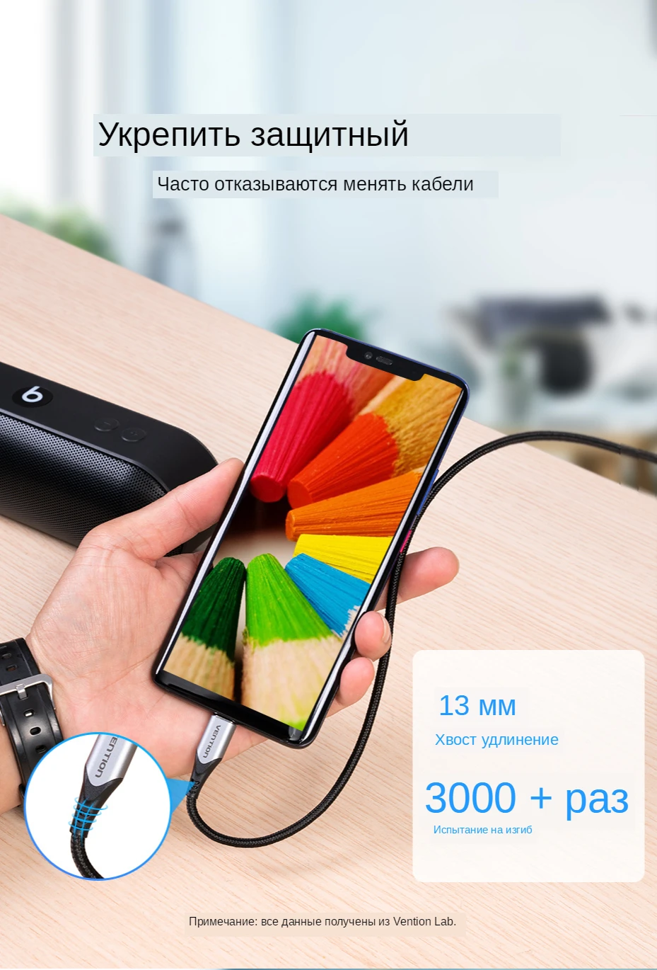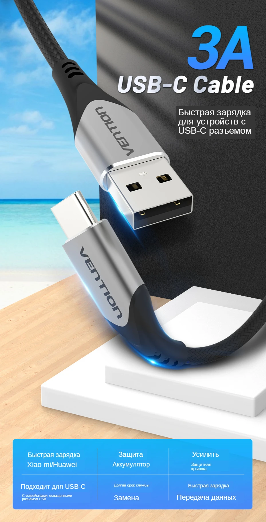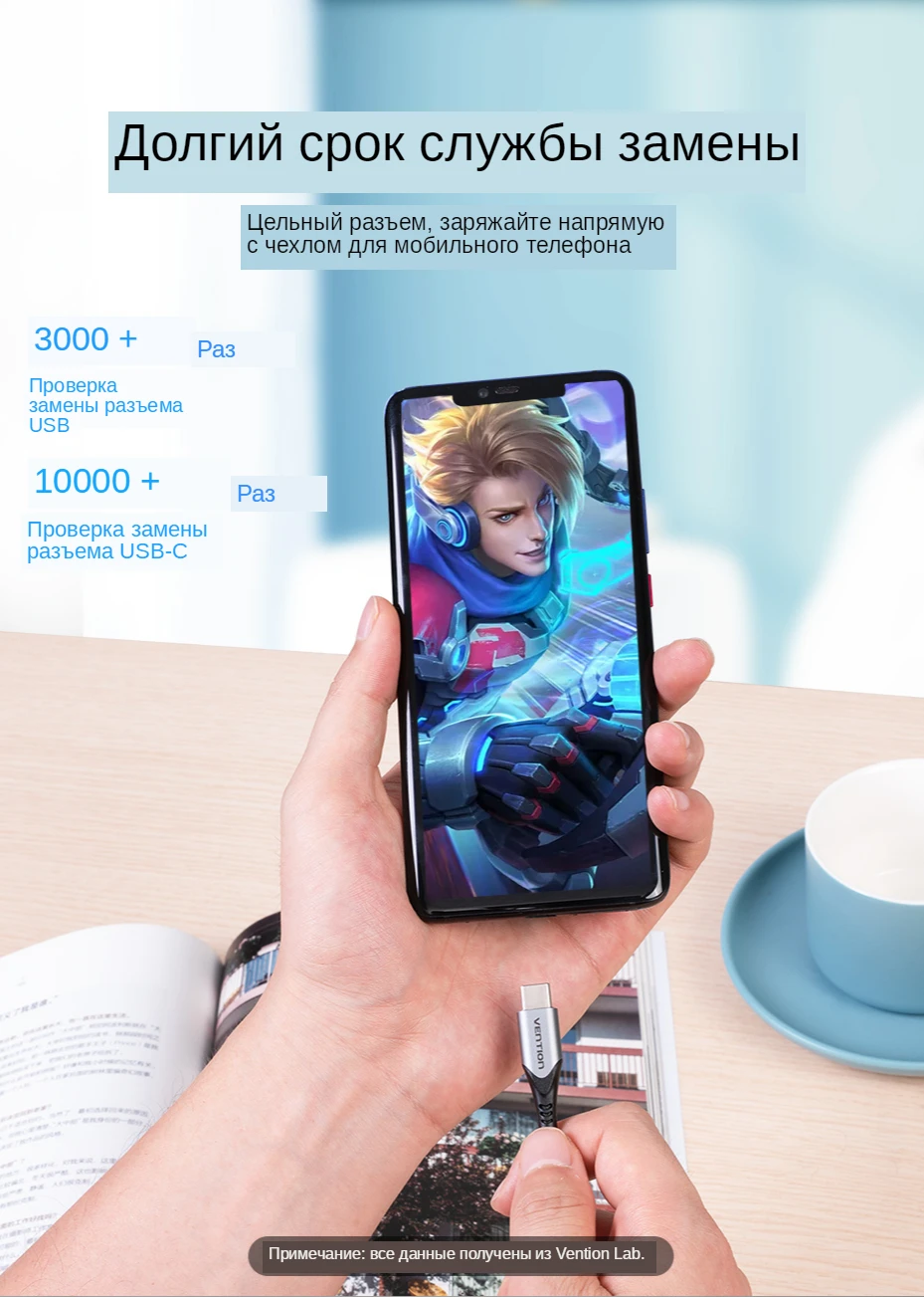 Убудаваны луджаны медны провад кабеля USB C і падцягвальны рэзістар 56 k забяспечваюць максімальны ток да 3 А і перадачу дадзеных да 480 Мб / с, дазваляюць прыладзе з хуткай зарадкай ад хуткасці ад 0 да 100% і пры у той жа час перадаецца шмат фільмаў, файлаў і песень.