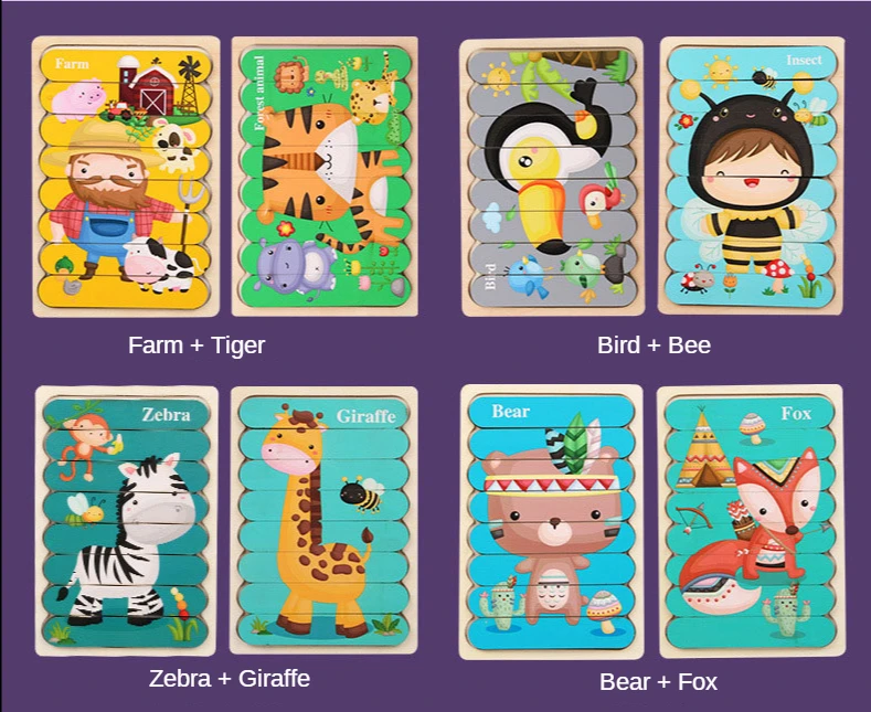 Деревянные пазлы нового стиля 2020 Особенности и характеристики: Материал: Деревянный Подходящий возраст: 3 года и выше Размер: 18*12*0,8 см Вес: 0,2 кг Посылка: герметичный пластиковый пакет