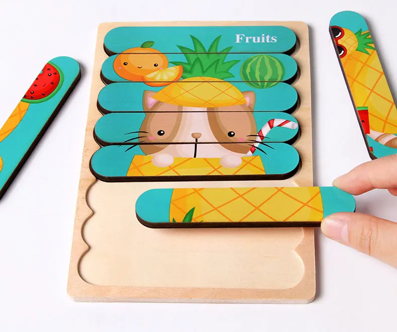 Новые деревянные пазлы, брусовые блоки, игрушка Монтессори, животные, фрукты, сделай сам, строительные деревянные игрушки, игрушки для детей, развивающие