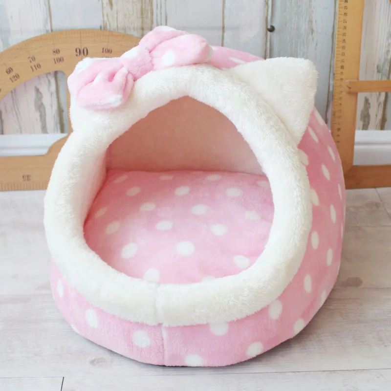 The semi-enclosed structure gives the dog a sense of security while also keeping it warm. The outer layer is soft flannel, the inner wall is polar fleece, the bottom is waterproof Oxford cloth, the inside of the cushion is PP cotton + sponge, and the middle is a movable cushion