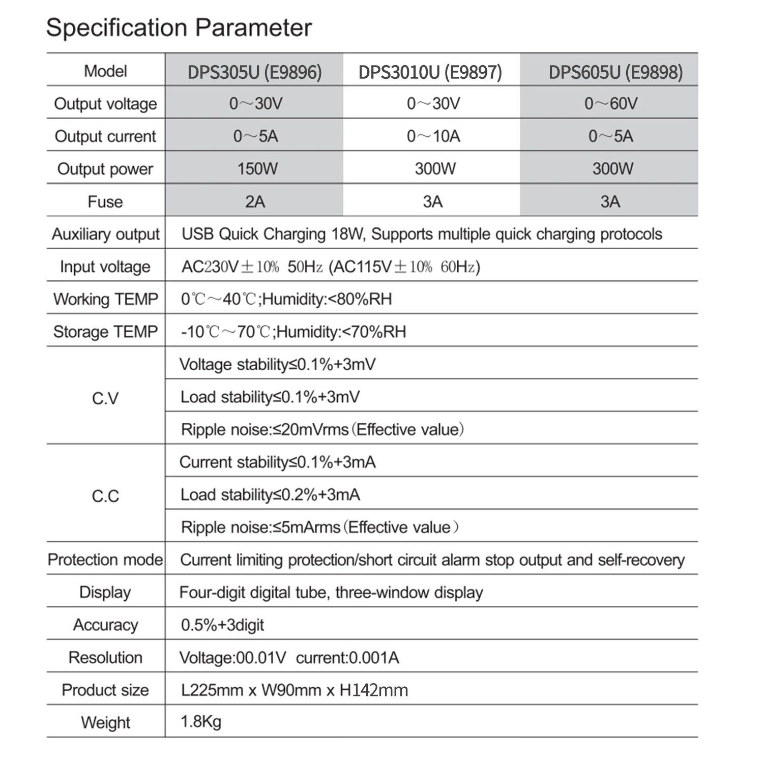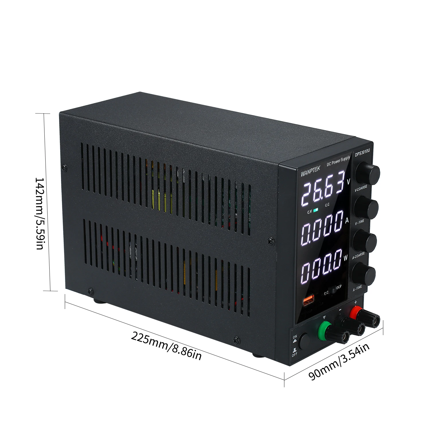 Продукция серии DPS представляет собой трехоконный четырехразрядный Высокоточный Регулируемый источник питания постоянного тока, который может одновременно отображать напряжение, ток и мощность. Стабильность источника питания и коэффициент пульсации очень хороши, имеет две модернизированные функции быстрой зарядки USB и идеальную защиту от короткого замыкания. Может быть широко использован в мобильный телефон/компьютерное обслуживание, использование школы и производственной линии, и т. Д.