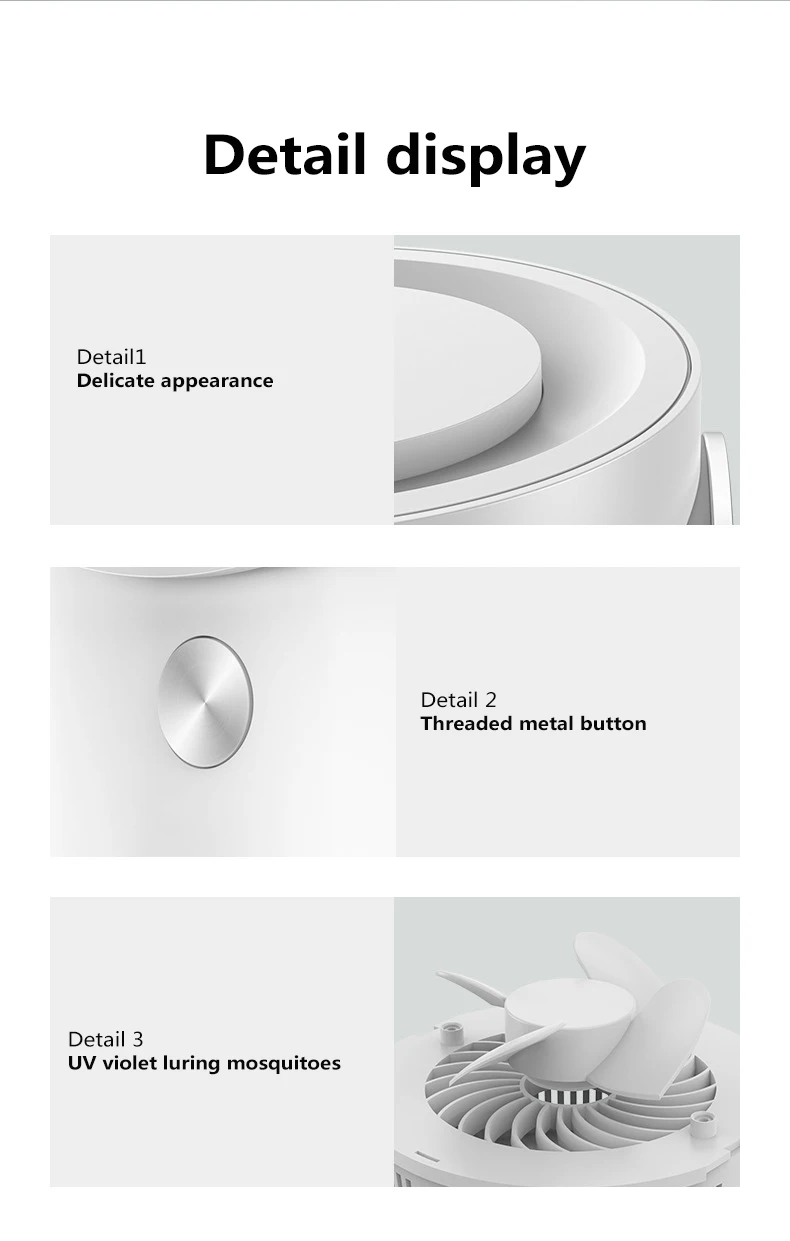 5. Высокая скорость вращения, тип воронки анти-устройство, чтобы убедиться, что комаров находится в или вне.