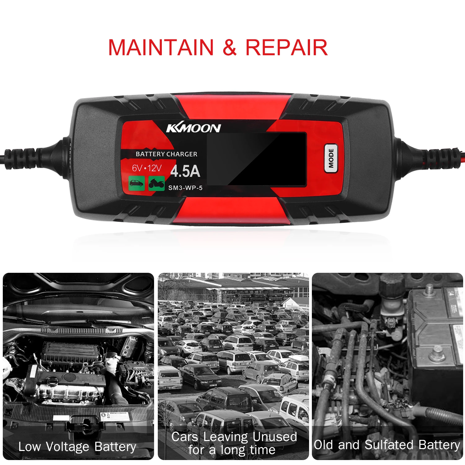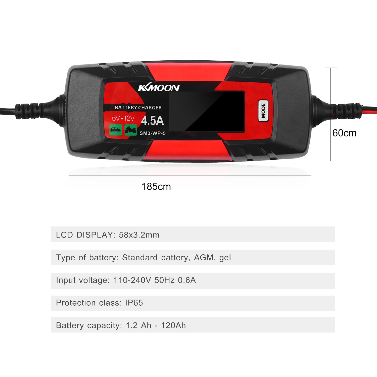 Широкий диапазон Применение--- Работает с 12 В/1,2 Ач до 12 В/120 Ач свинцово-кислотными батареями, AGM, GEL, SLA батареями, что означает, что он используется для батарей в автомобиле, грузовике, мотоцикле, газонокосилка, лодка, RV, внедорожник, ATV и многое другое.