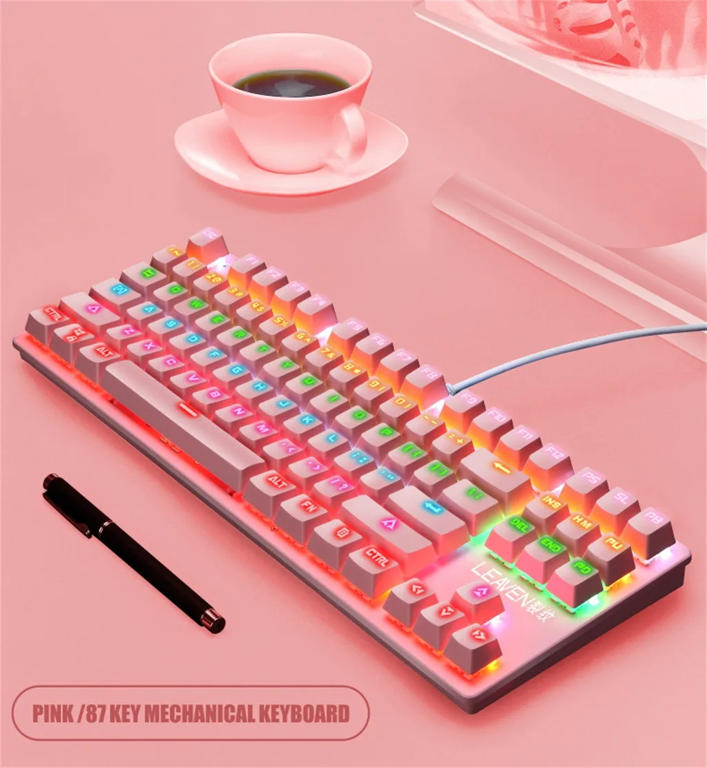 K550 Механическая USB клавиатура цветной светодиодный с подсветкой игровая клавиатура зеленый вал 87 клавишная клавиатура для Windows XP/7/8/10 Mac выше 10,2