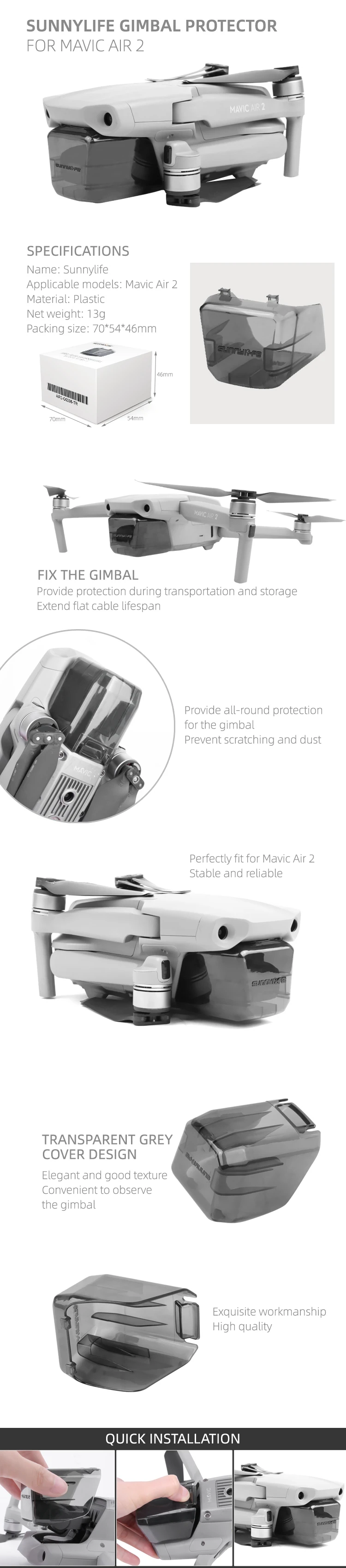 2. Установка: предназначена для DJI MAVIC AIR 2, идеально подходит для mInimal помехи с карданного шарнира, если вы летите с этим протектором.