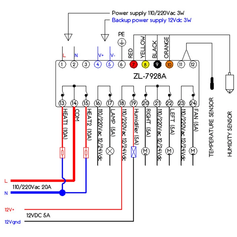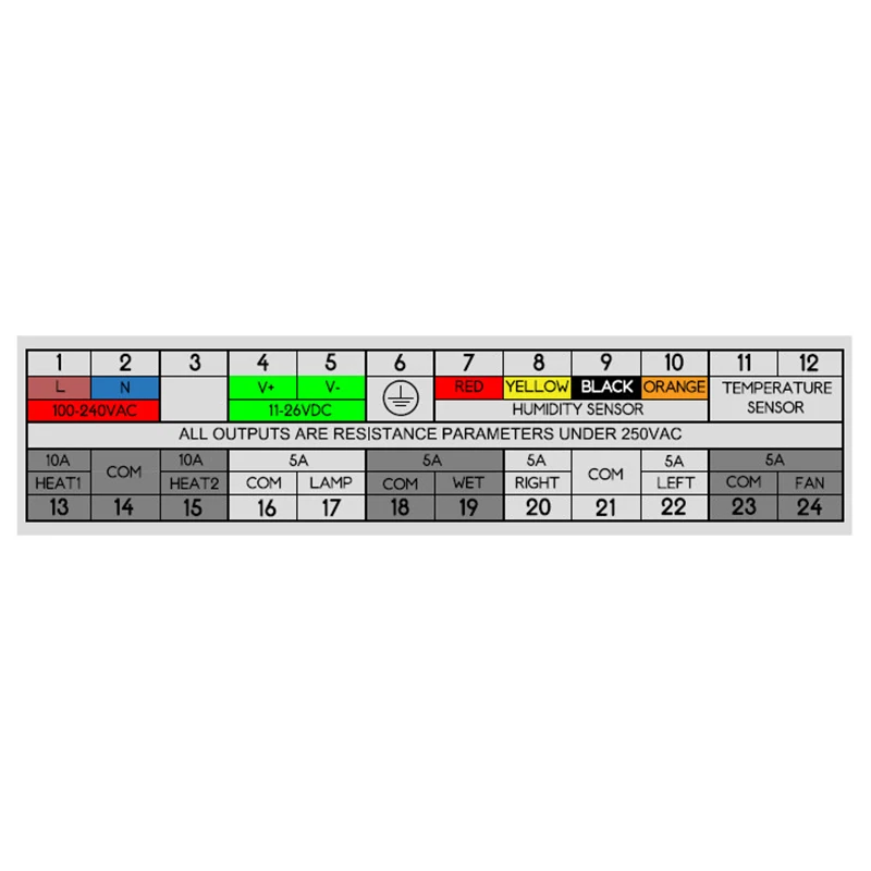 Выход для нагревателей: 12, 24 В постоянного тока. Номинальный ток менее или равен 10А для каждого выхода