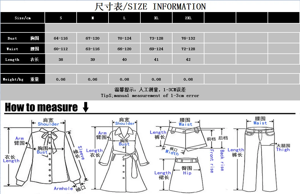 Примечание: Этот список предназначен только для одной одежды, штанов, ремней, часов, ожерелья и других аксессуаров (если таковые имеются), в комплект не входят