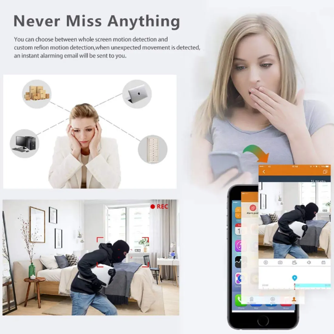 1. Потоковая передача в реальном времени на ваш телефон и ПК и оповещения о активности при обнаружении движения.