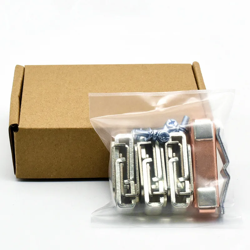 Один комплект включает в себя: 3 подвижных части и 6 фиксированных частей и 3 листовых пружины и 6 винтов